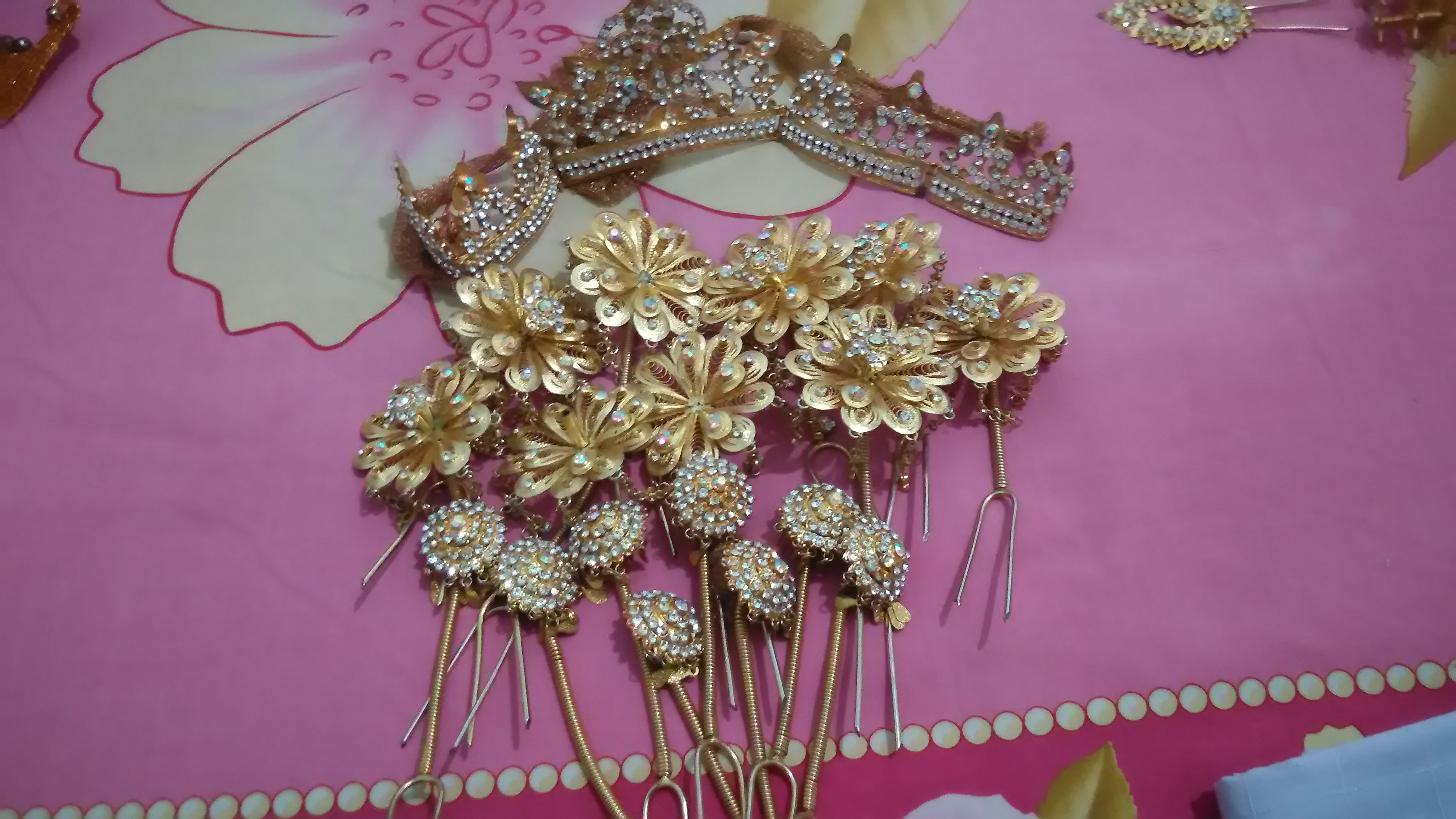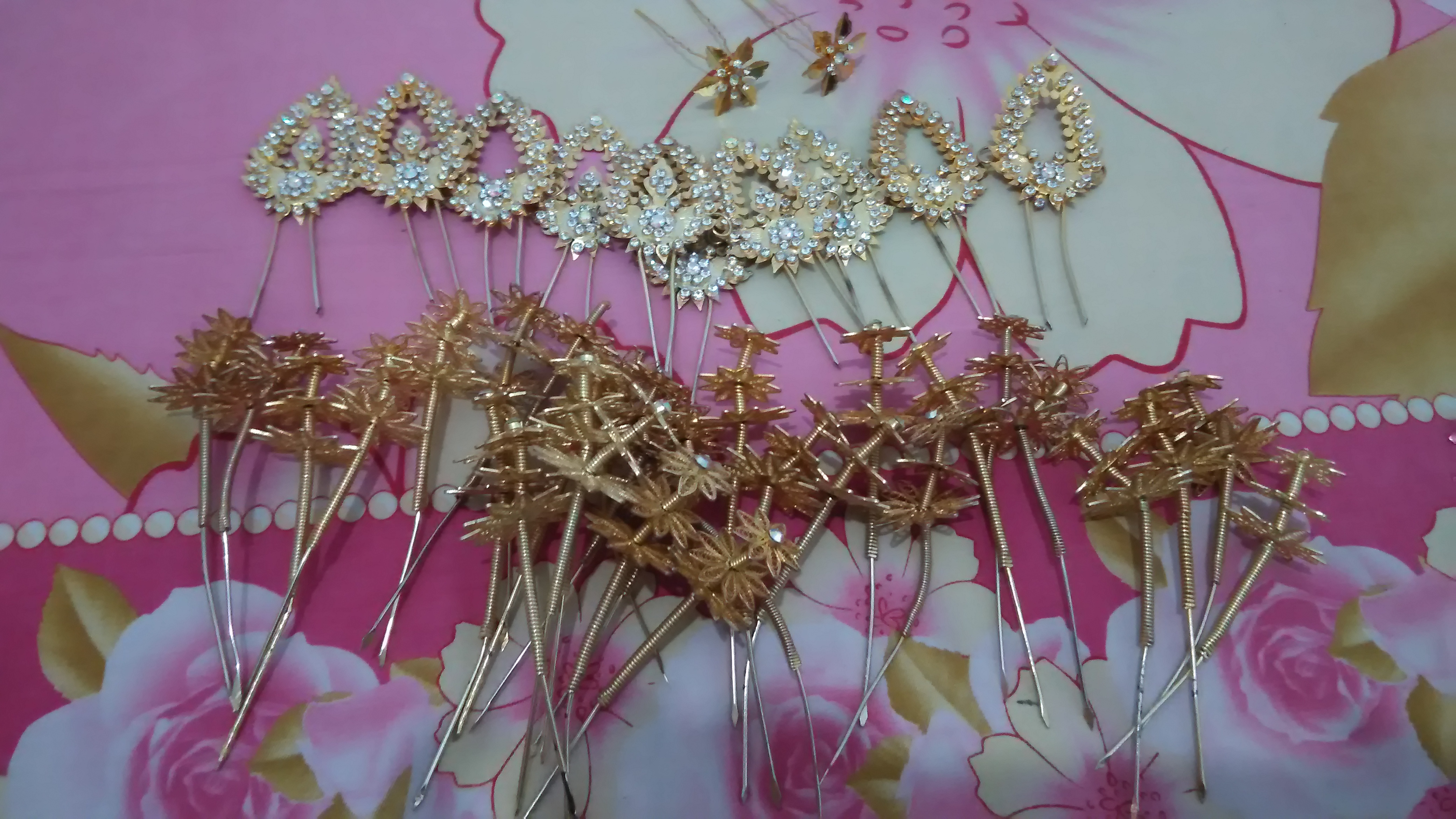 [Sebanyak ini pentul yang digunakan untuk menyemat perhiasan di kepala seorang pengantin perempuan di Banda Aceh]