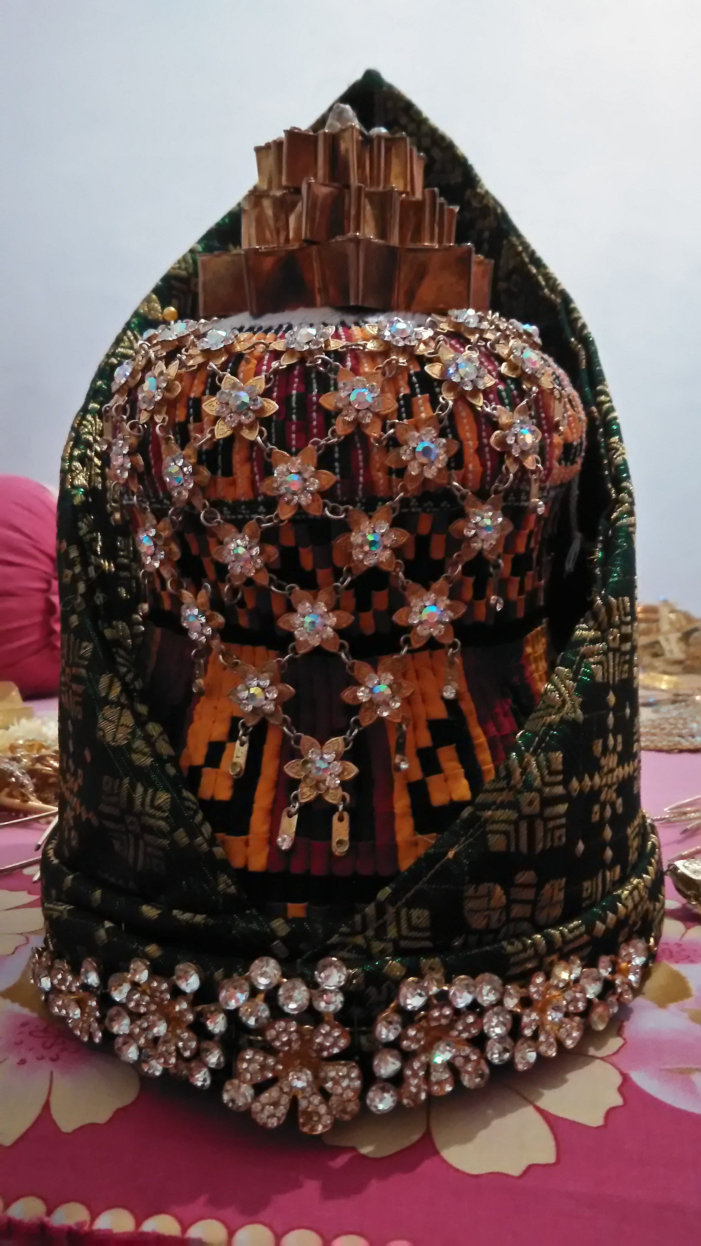 Sambil melepaskan ragam hiasan itu, saya tanyai adik ipar, bagaimana kondisinya saat segala atribut hiasan kepala itu dipasang tadi pagi.