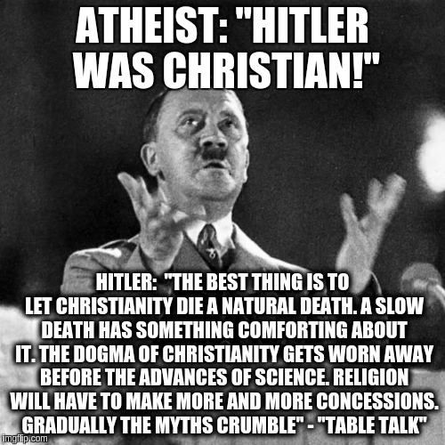 "Hitler once advised Mussolini to move away from the vatican and catholic church, warning that it could pose a problem for him in the future. When Mussolini asked how he would do this, Hitler turned to one of his military adjutants and asked how many of Hitlers entourage attended church?