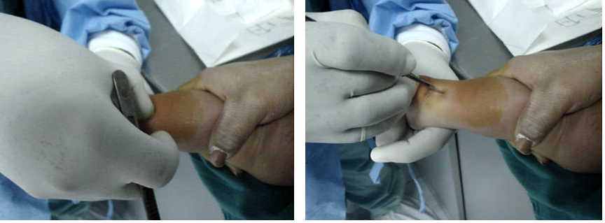 Once the adequate time has elapsed (some cases may take longer than others depending on the severity), a minimum surgical treatment called an Achilles tendon tenotomy is recommended for most patients, in order to finally complete the correction and an adequate posture.