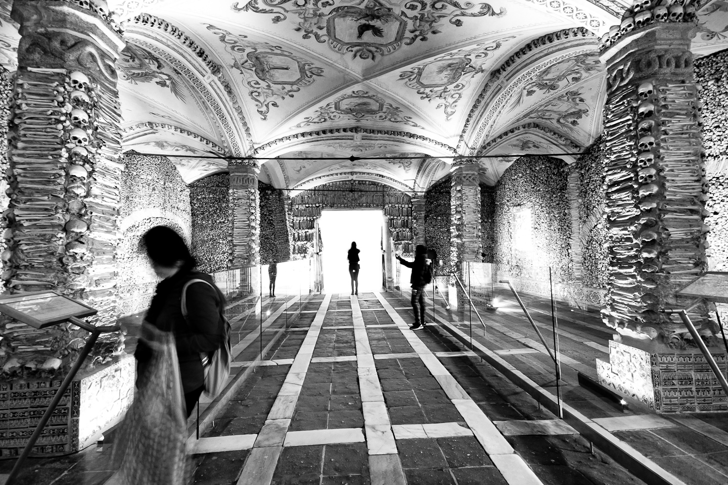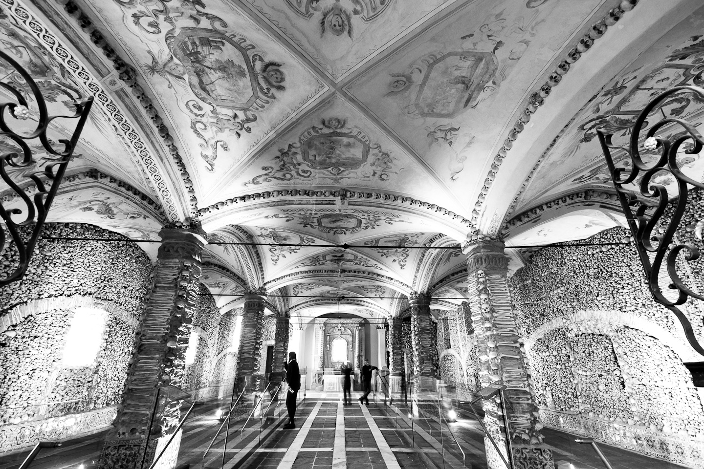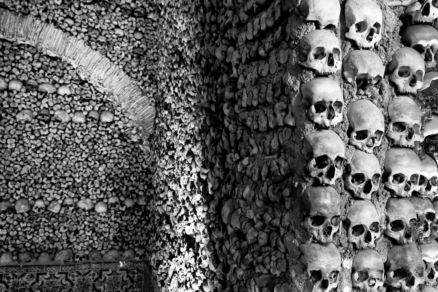 The story (or the myth) says that the cemeteries of the town were full at the time of the chapel's construction and the monks came up with this idea to solve the problem and make a metaphysical statement at the same time! This unexpected decoration that gives it the looks of a crypt, is also the main reason that most of the tourists of Évora pay a visit to this unconventional chapel.