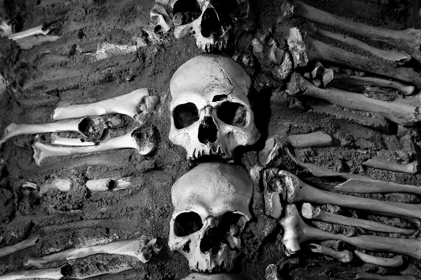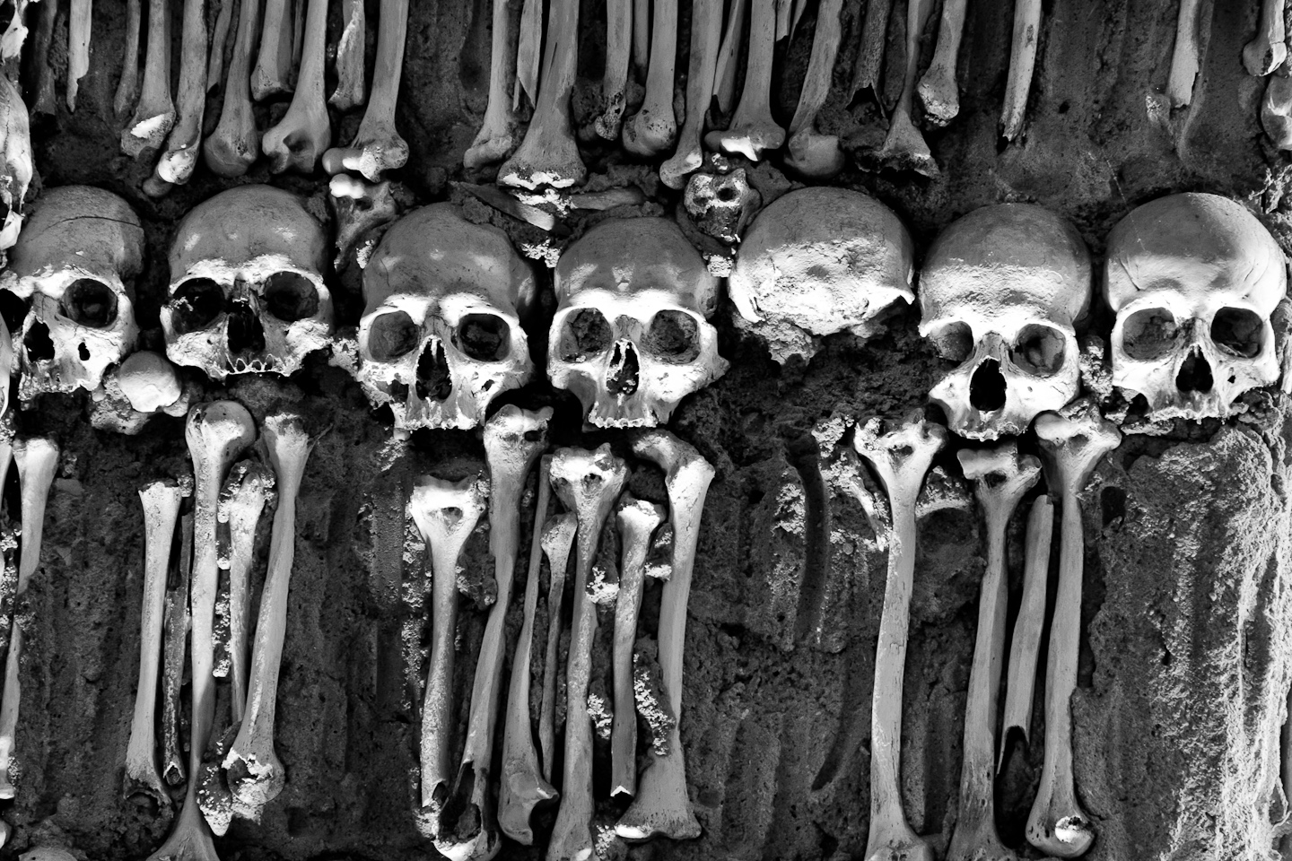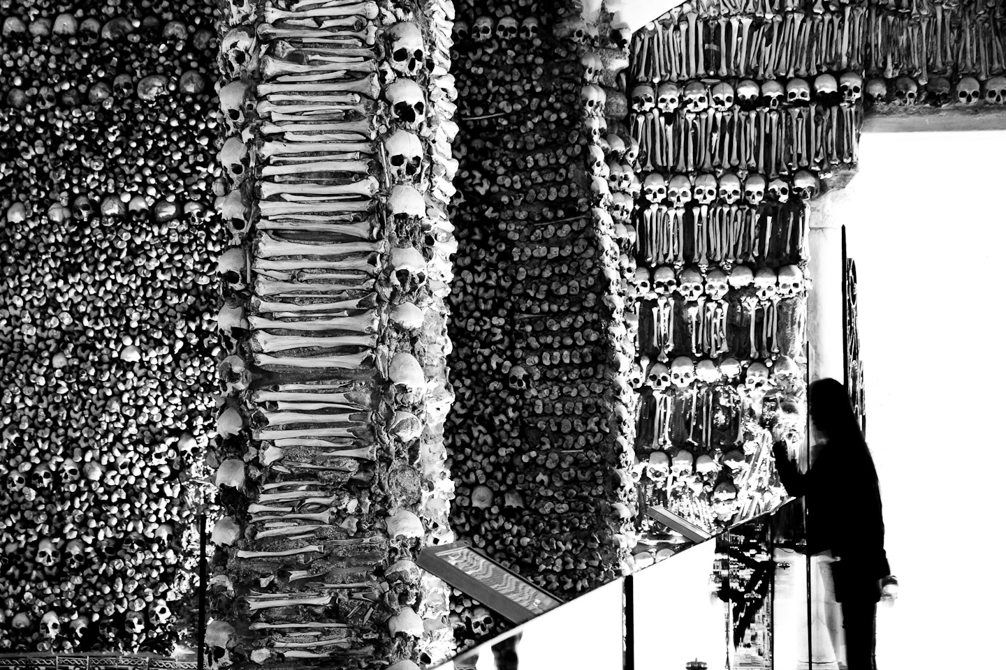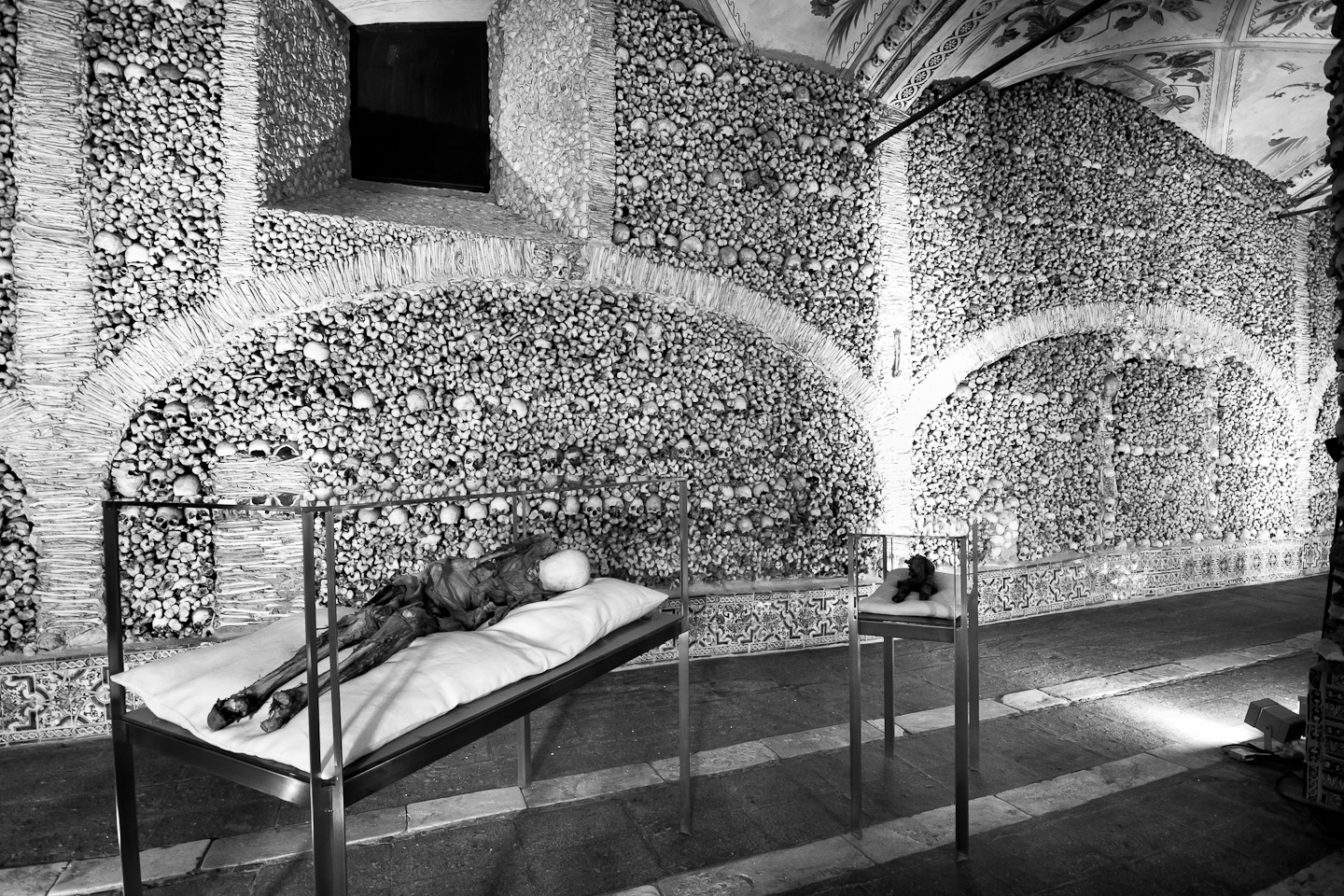 All the walls are completely covered with the bones and skulls of around 5000 people and even two whole skeletons (one of them is a child) are resting on the back of the room!