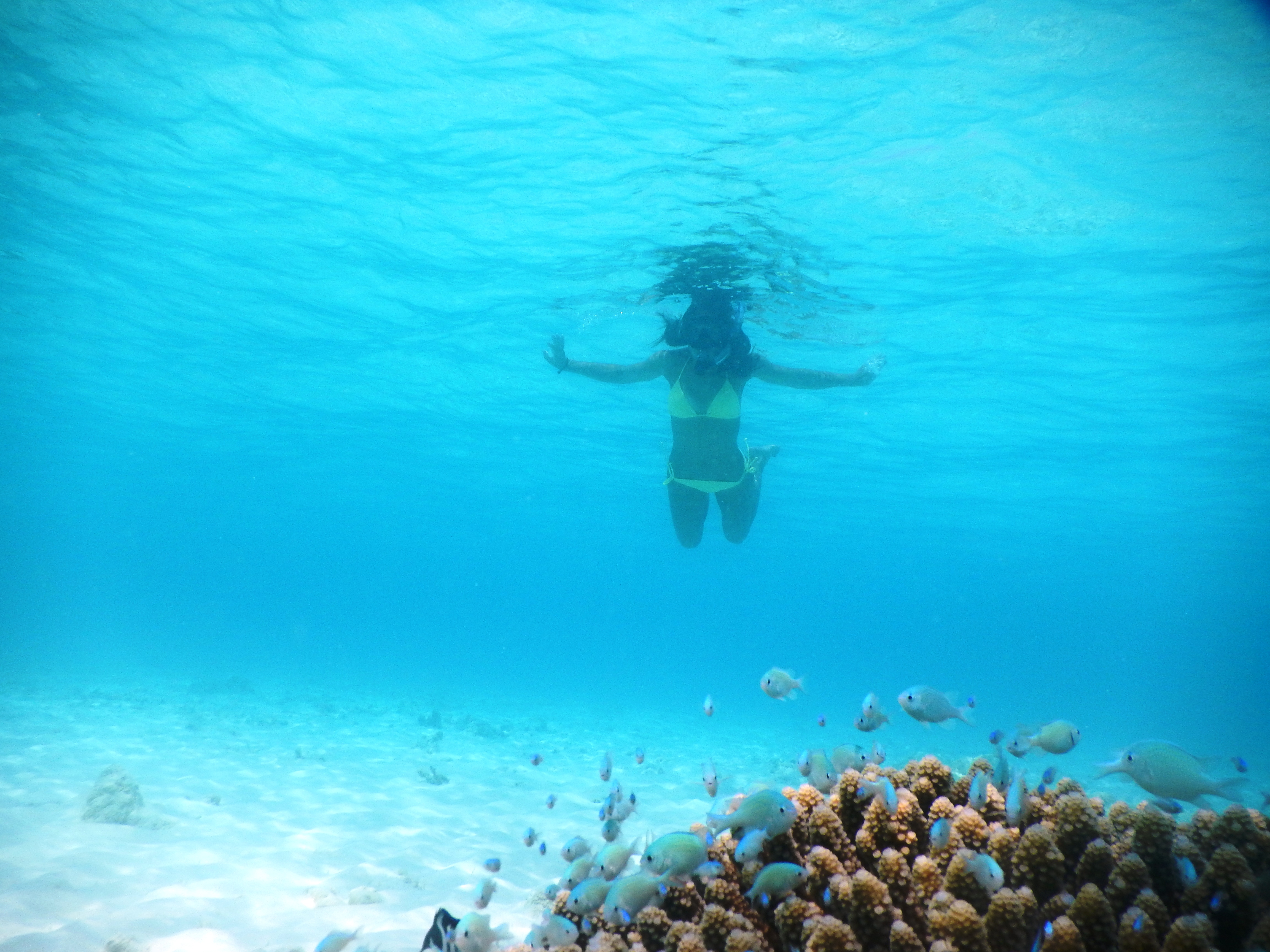 Snorkeling here in the Indian ocean in Maldives, where visibility is usually up to 15-18 meters and where I first learned how to scuba dive. My life was never the same again.