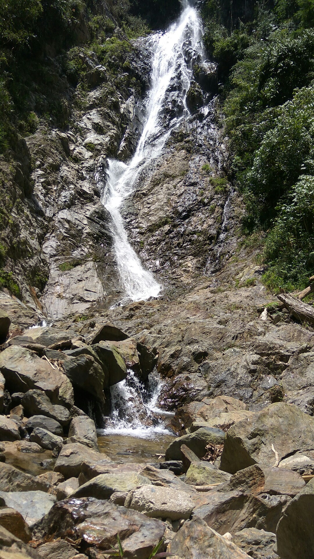 After we had our lunch, most of us continue to chill and enjoy the cold fresh air. All of a sudden, we heard a very loud sound of trees cracking on top of the waterfall. After few second of tree cracking sound, all of a sudden two big rock just come tumbling down and it hit on the other big rock and spread into many pieces coming down towards us.