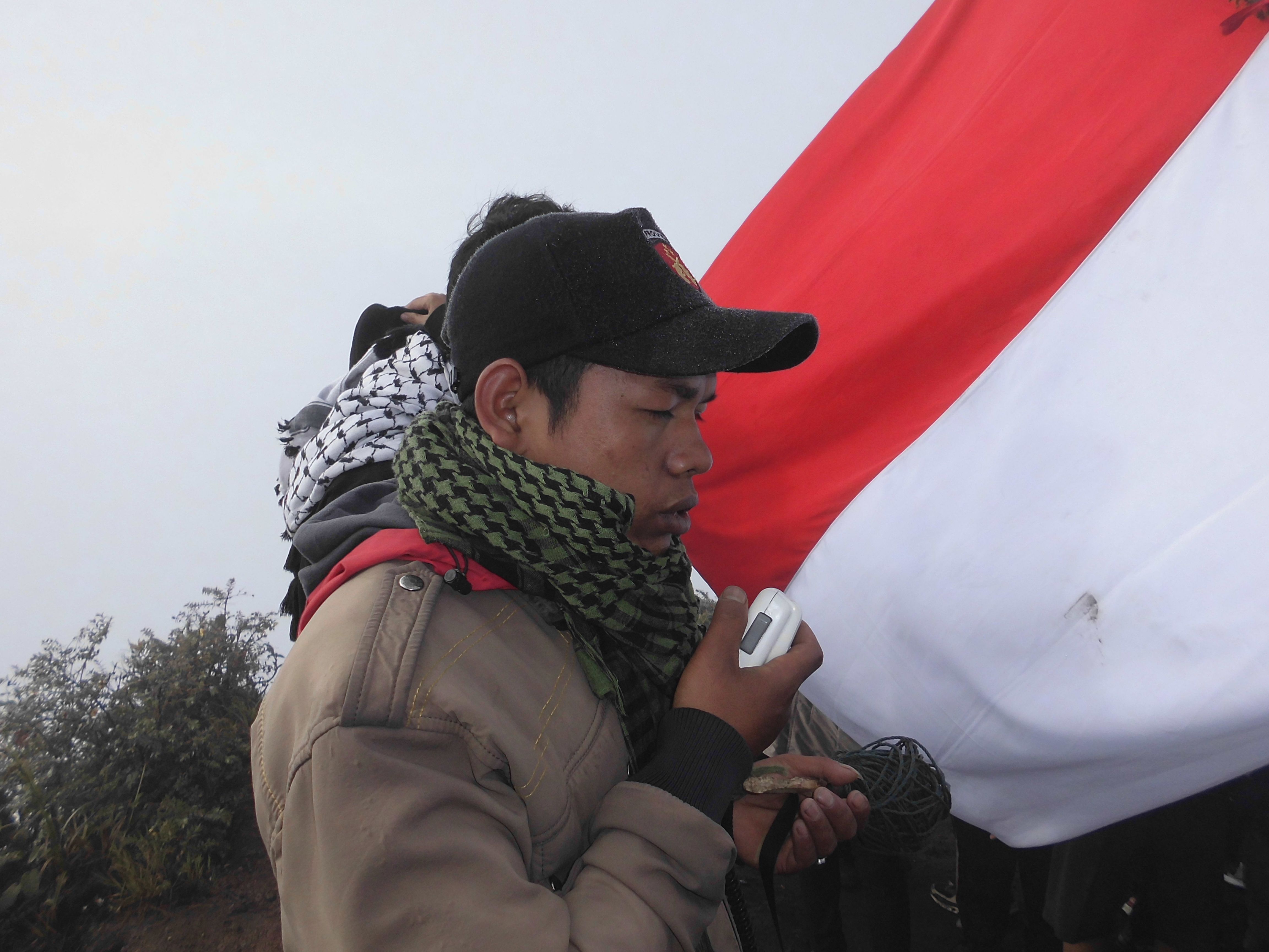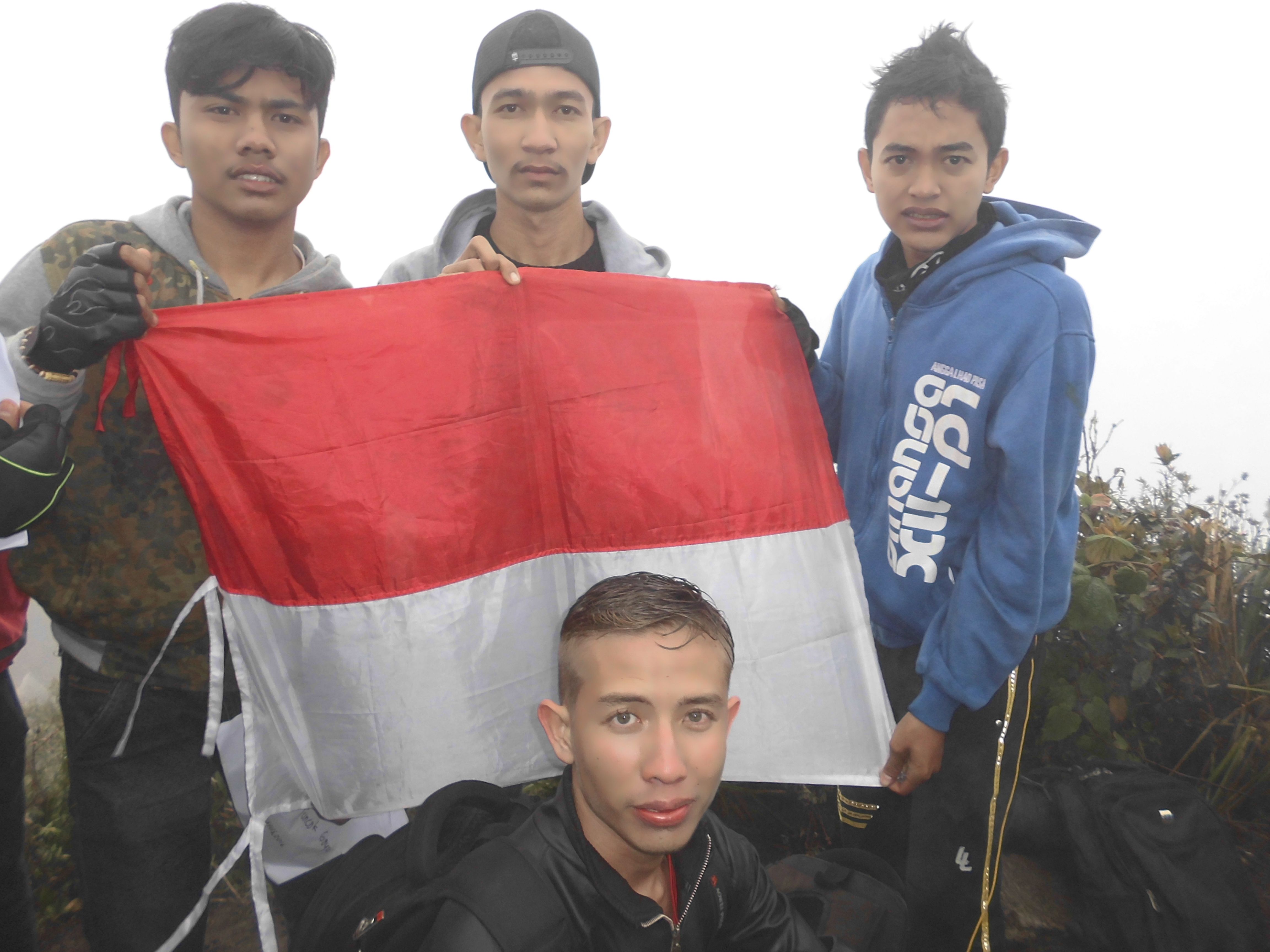 "Attention attention, to all climbers who are at the peak of BURNI TELONG mountain please stand and march to follow the flag ceremony", the announcement of the committee invited us to follow the anniversary ceremony of the Independence Day of Indonesia.