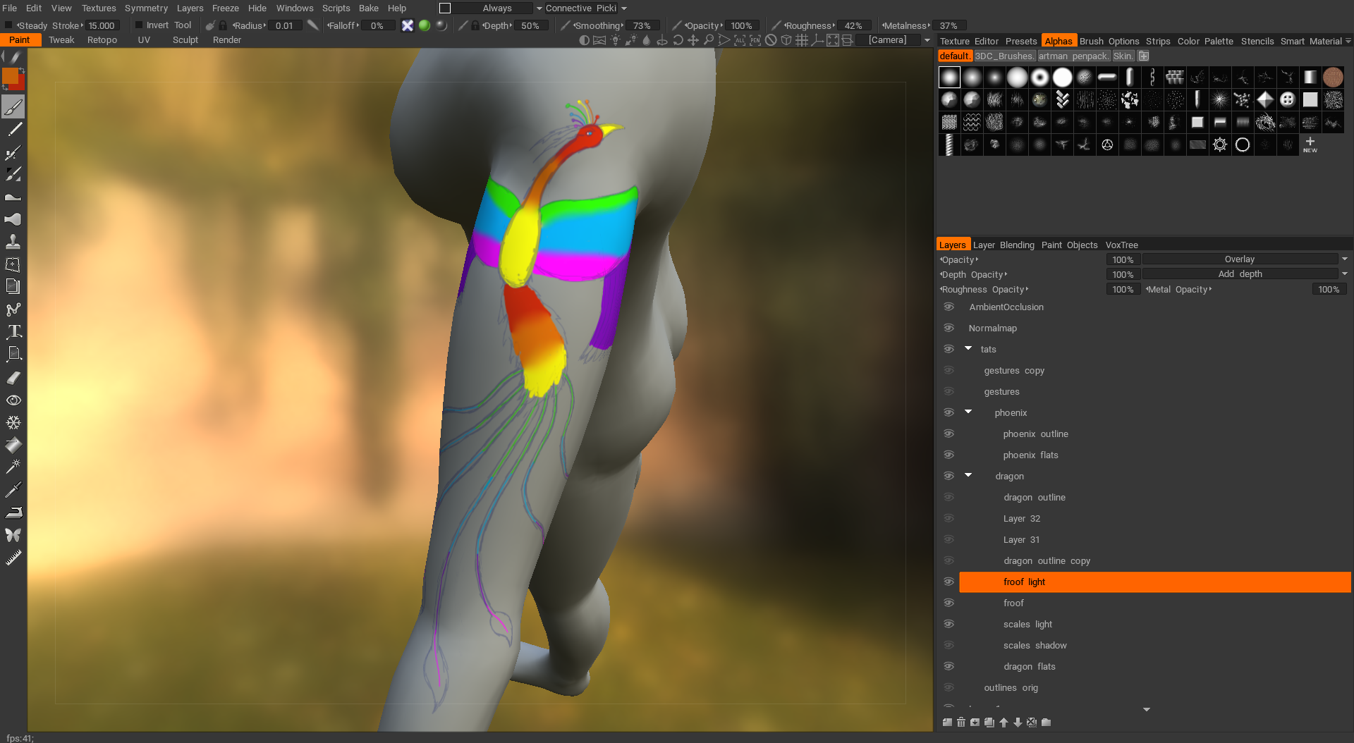 I remember reading arguments against layer based painting inside Blender, the people arguing against it insisted that all texture painting should be done in painting programs and that Blender is a modelling/animation app and should just do those things really well and nothing that would detract from those things should even be considered XD (okay so I'm paraphrasing and exaggerating a lot). In all seriousness layer based painting can get pretty heavy especiallyif you do it like I do (I have had my layer index in Krita numbering in the hundreds but as it keeps incrementing and I sometimes delete some I'm not sure how accurate it is) so I can understand why some may feel that it might not be in Blender's best interests. If they were able to find some way to incorporate it well without everything else blowing up or lagging then I think they'd just about have everything in one package.