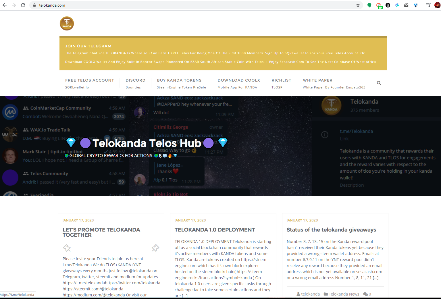 https://telokanda.com needs new users for the telegram! Imagine a Dclick style system with in chat bounties and giveaways. Telokanda will over time develop into a hub to bring African Steem users into the telos Blockchain with its Worker Proposal system.