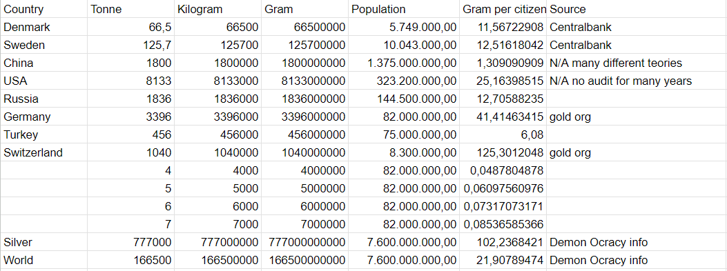 Nogle tal på hvor meget guld staten eller centralbanken holder på per borger.