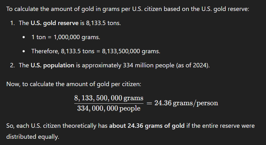 Når nu USA har verdens største beholdning af guld. Så skulle et reset af økonomien være let og igen baseres på guld og USA's lagerbeholdning være let og lige til.