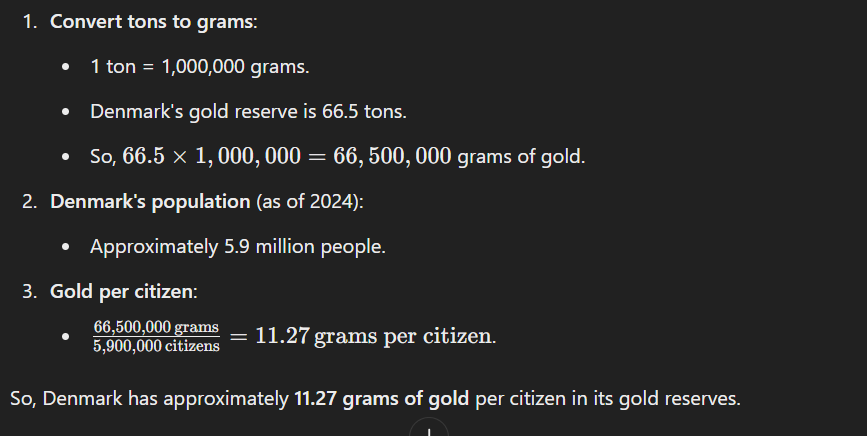 Danmark har 66.5 ton i London og det svare til 11.27 gram per borger