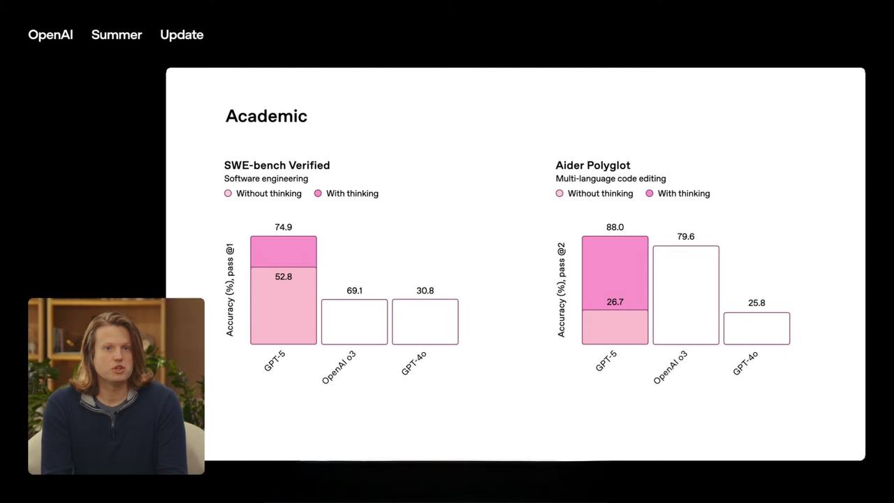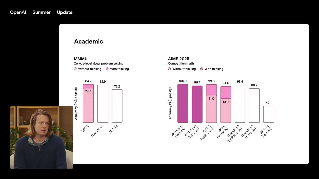 • Автоматический агент: GPT-5 способен выполнять задачи самостоятельно. Ведите блог, проводите интервью, анализируйте рынок или управляйте проектом — теперь это под силу ИИ.