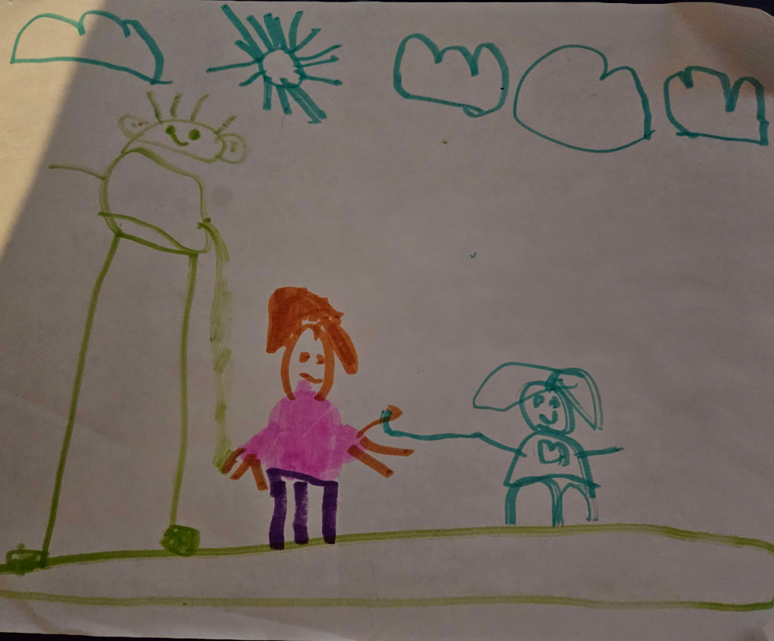 I decided to experiment with this, and the results have been both fun and inspiring! Here’s a little glimpse into the process and the amazing results that AI can produce when it interacts with the raw imagination of kids.