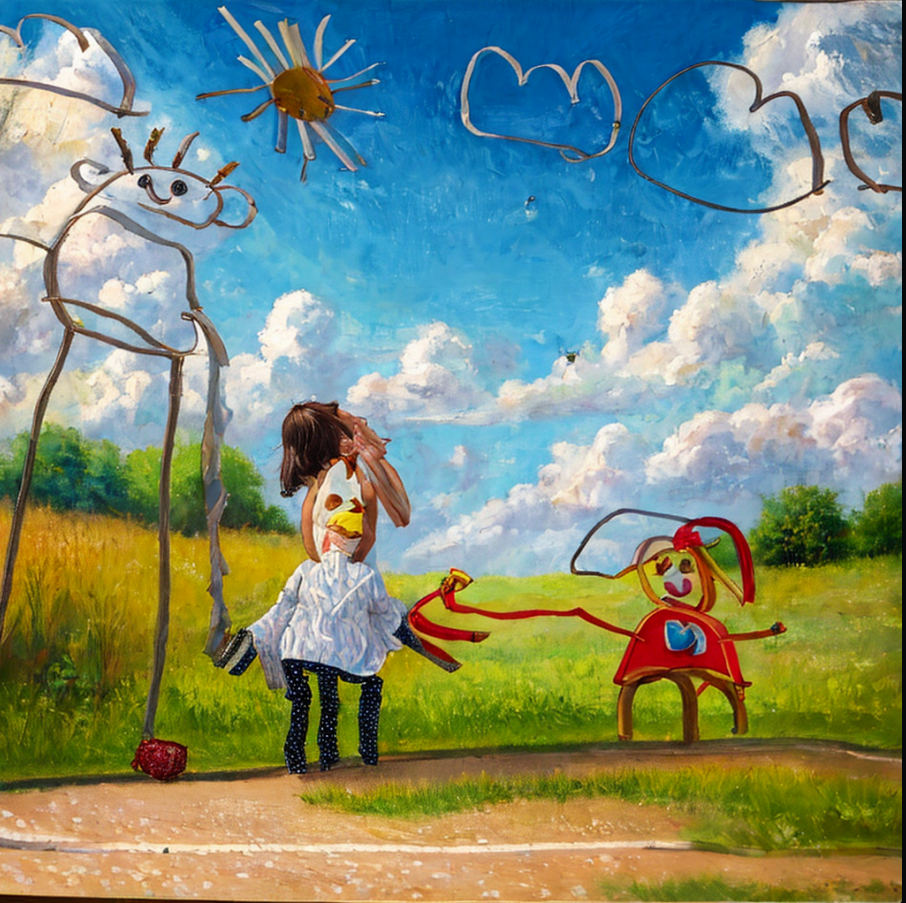 Children’s drawings are often a blend of colors and shapes that are free from rules or expectations. It’s exciting to see how an AI can take these whimsical sketches and turn them into something more detailed and "real". It’s like bringing to life what was once just an idea on paper.