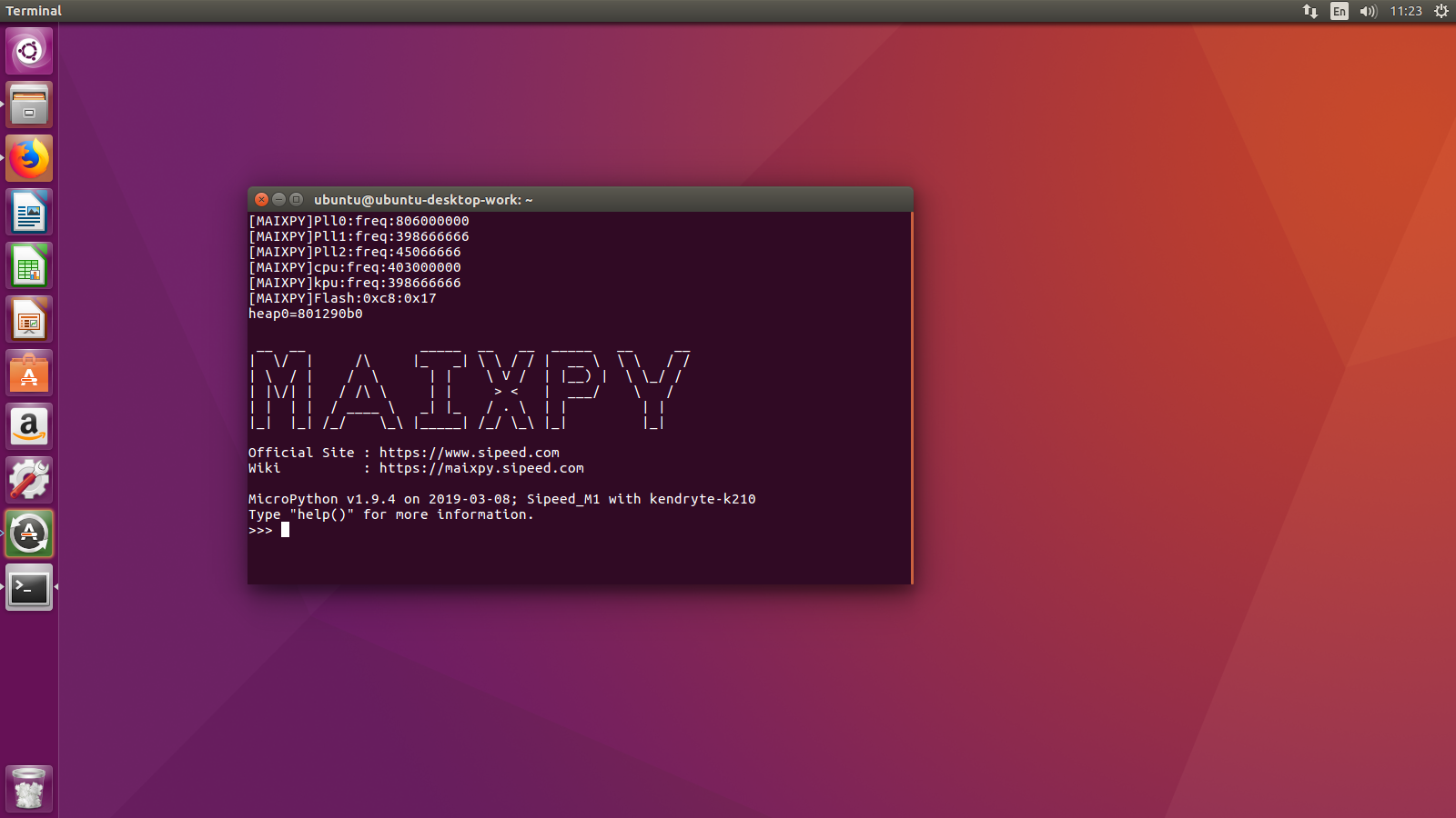 First of all we will need to flash micropython firmware to our board. A precompiled binary is included in github repository for this article, together with kflash.py( a flash utility). If you wish to compile the firmware from the source code, just download the source code from https://github.com/sipeed/MaixPy, install the toolchain and compile the source code into maixpy.bin file. Detailed build instructions can be found here.