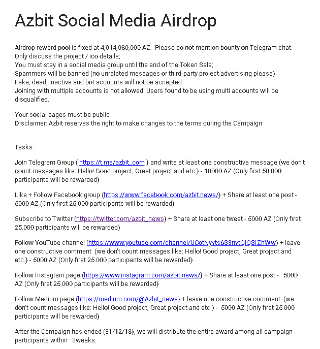 Has las demás tareas de Youtube, Instagram y Medium para ganar hasta 15,000 AZ tokens más!