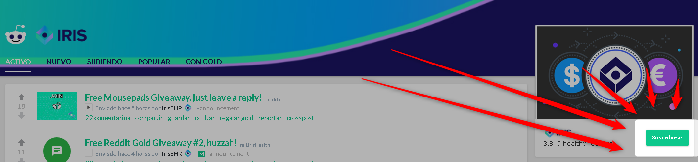 Te suscribes al canal de Reddit (como se muestra en la imagen)