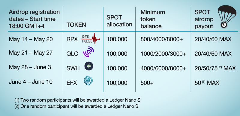 Register on Spotcoin.com - Free SPOT for EFX, SWH, RPX, or QLC token holders.