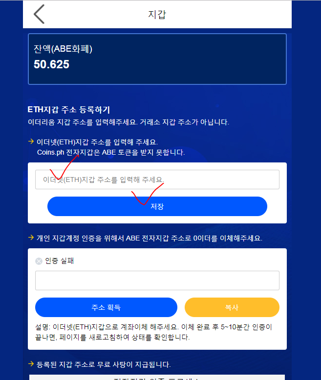 - 이더주소 입력