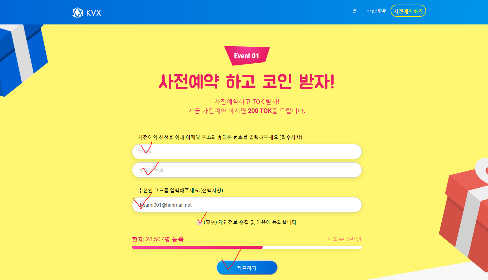 #5. 난이도 하 ★☆☆☆☆ KVX 거래소 사전예약 에어드랍