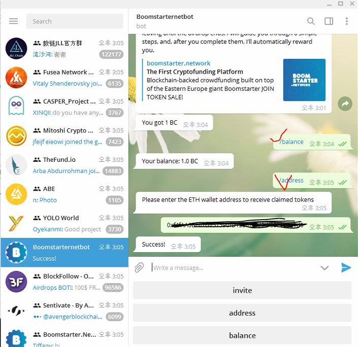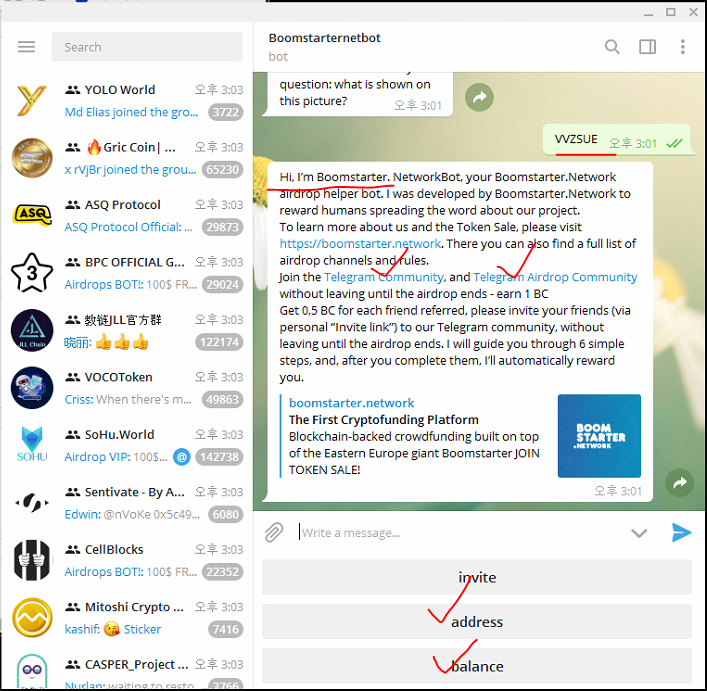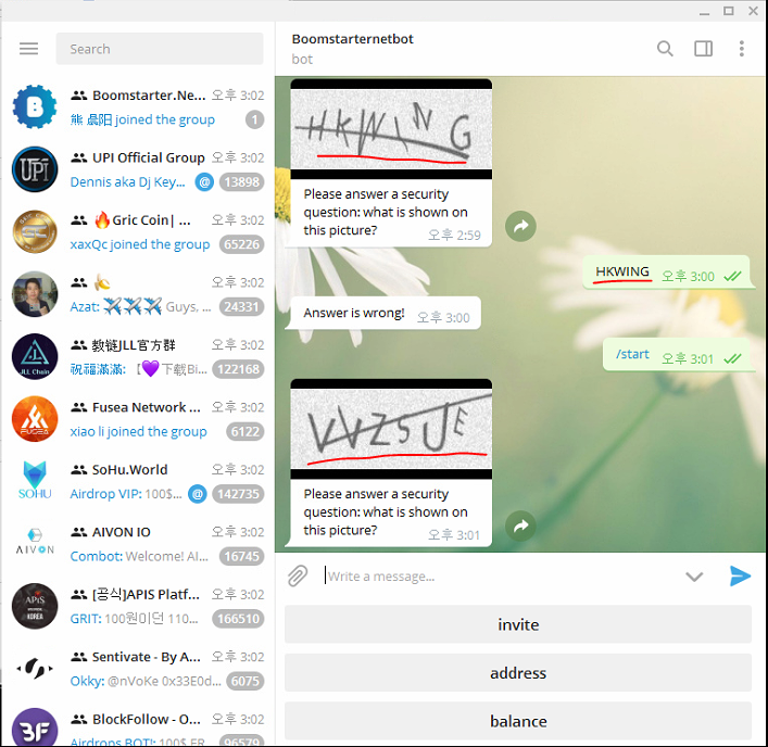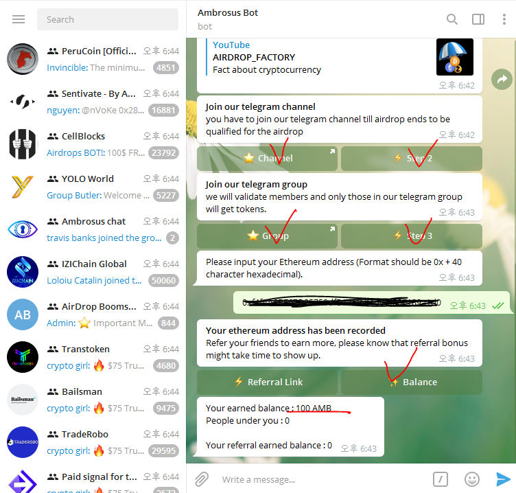 - 텔레그램 그룹 조인 후 step 3 클릭