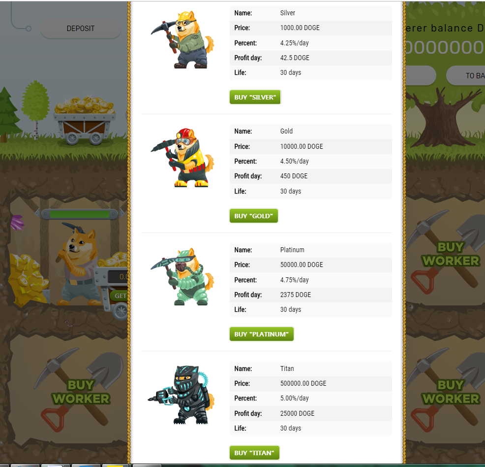 - 도지로 다른 채굴맨을 사서 더 채굴할 수가 있습니다.