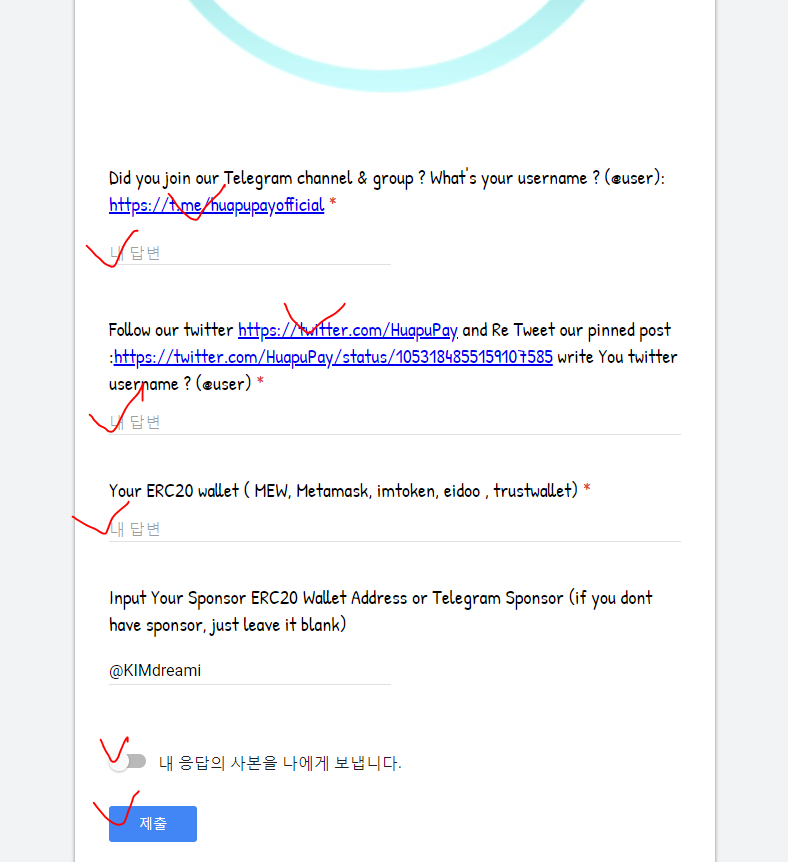 https://docs.google.com/forms/d/e/1FAIpQLScxfX6qaAdMzeHDosXvxJGaZr-_9U9AAWbvbkip0vVs65T_BA/viewform?entry.1625954761=@KIMdreami