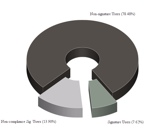 I have presented a chart shows the percentage and how many STR have been distributed to every specific category. This time, a doughnut chart is also presented for signature user’s statistics for we able to know the standing and how many people got additional stake for every airdrop.