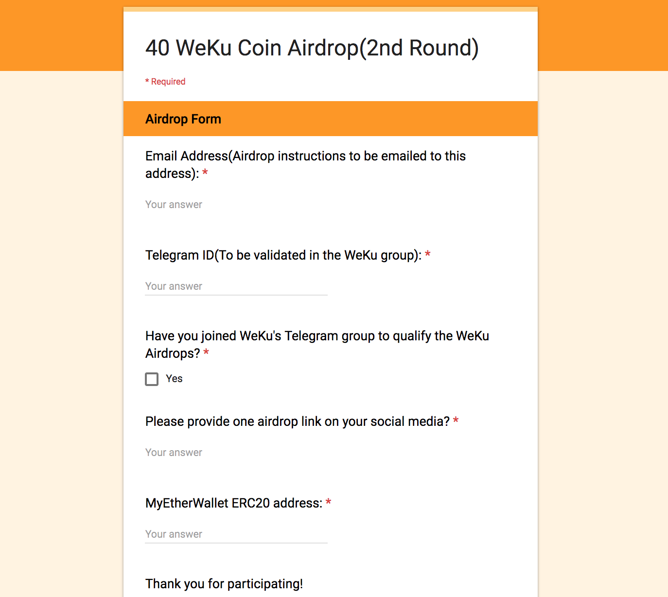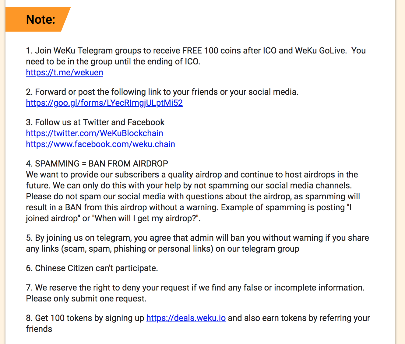 This post is to point to the detailed Airdrop information at: WEKU Airdrop information page