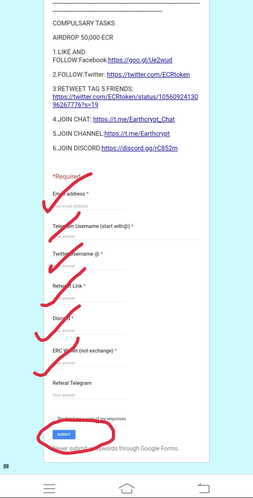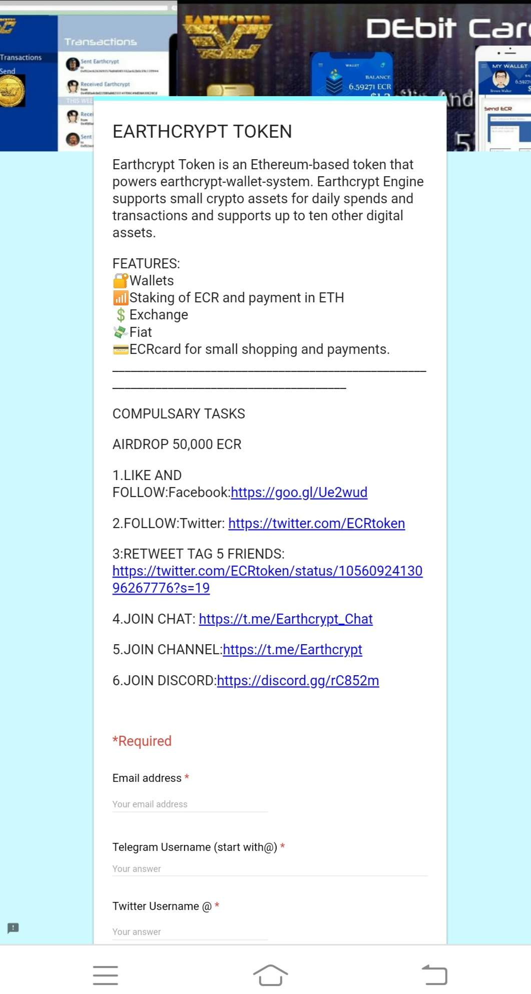 The Project is Airdropping 50,000 ECR per participant max. 1000