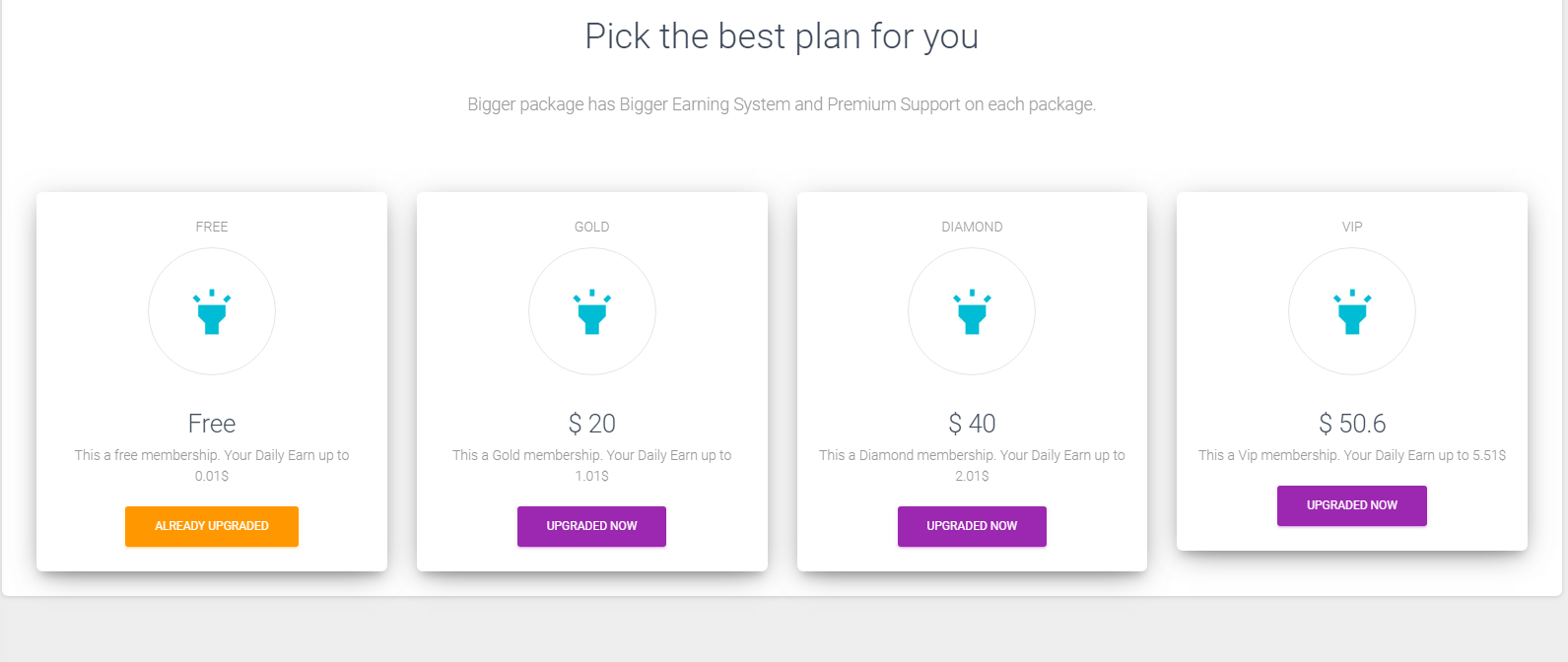 Membership of $50: This membership returns $5.51 per day in paid ads for 30 days generating $165.3 per month also gives you the opportunity to publish your website for 30 days on the platform.