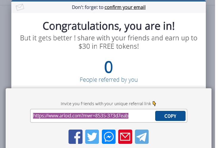 After clicking on the link you to drag down and sign up for an account. Then your referral link will generate spread this referral link to your friends and followers community through any social media. Vefication of email is necessary here. At least 20 people should join from your referral link then only you will able to grab this $30 tokens.