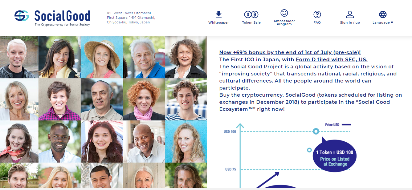 Buy the cryptocurrency, SocialGood (tokens scheduled for listing on exchanges in December 2018) to participate in the “Social Good Ecosystem™” right now!
