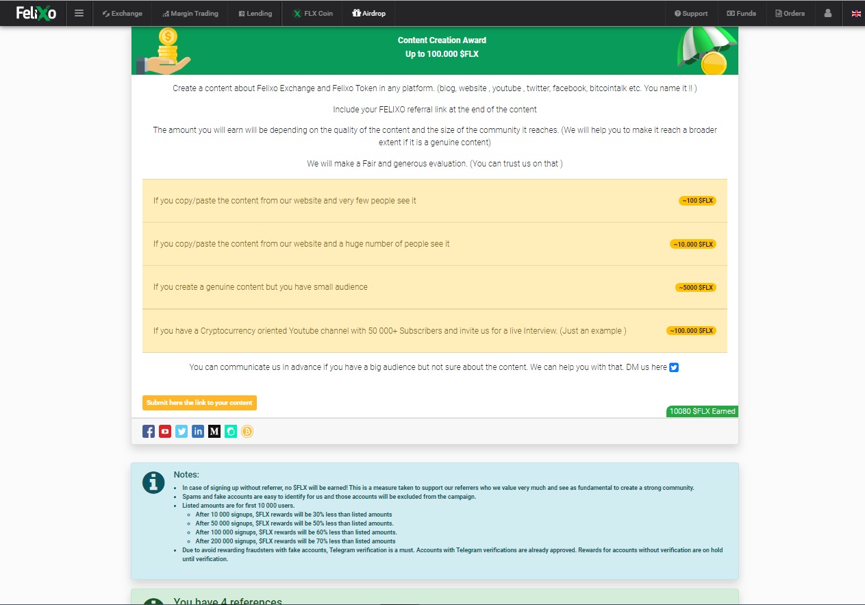 This is an opportunity not to be missed, a new exchange platform with many assets available and with the possibility to earn FLX tokens immediately withdrawable. The airdrop campaign began in August of this year and will soon end, there is not much time left, hurry up and earn your FLX Token.