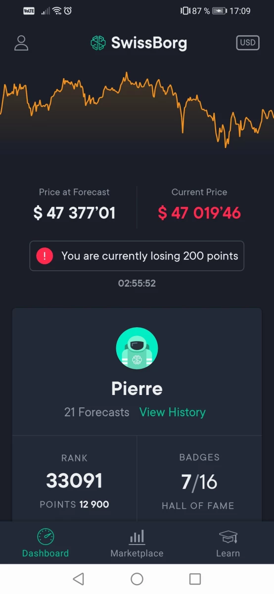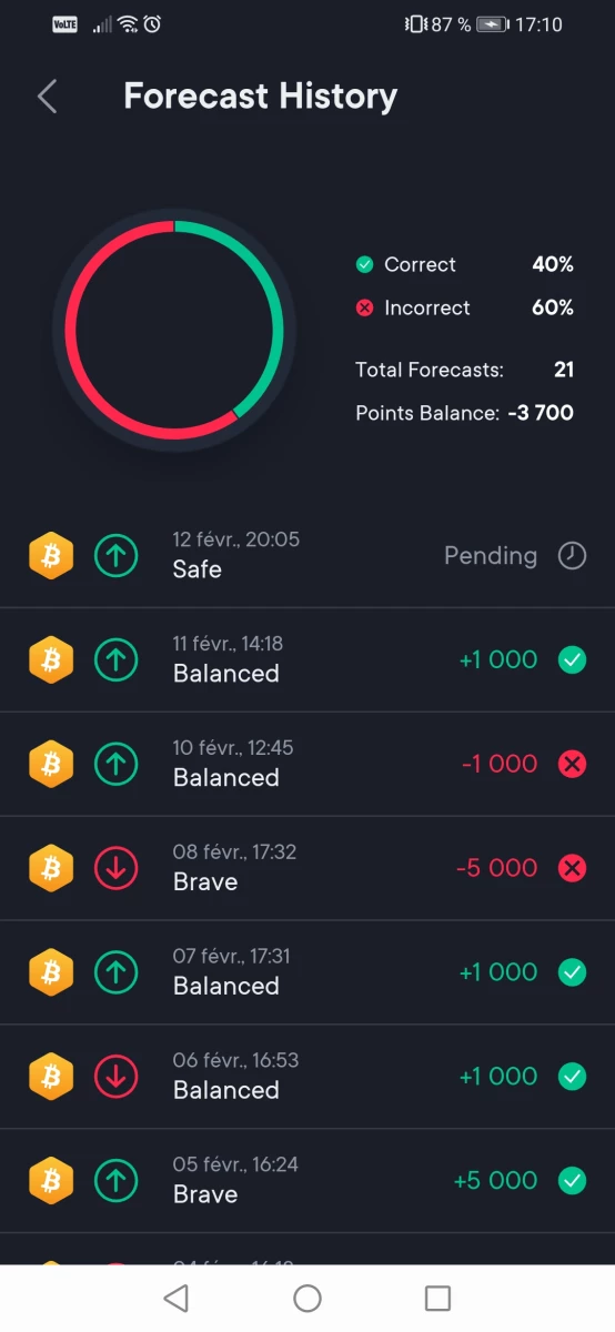 Heres are some pictures of the app and how it works, but the rules are easy : Do a forecast of BTC price in 24H