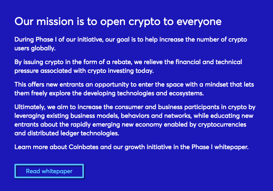 - Medium Blog: https://medium.com/coinbates/crypto-cashback-shopping-from-coinbates-our-first-weapon-of-mass-adoption-35d130de3abf