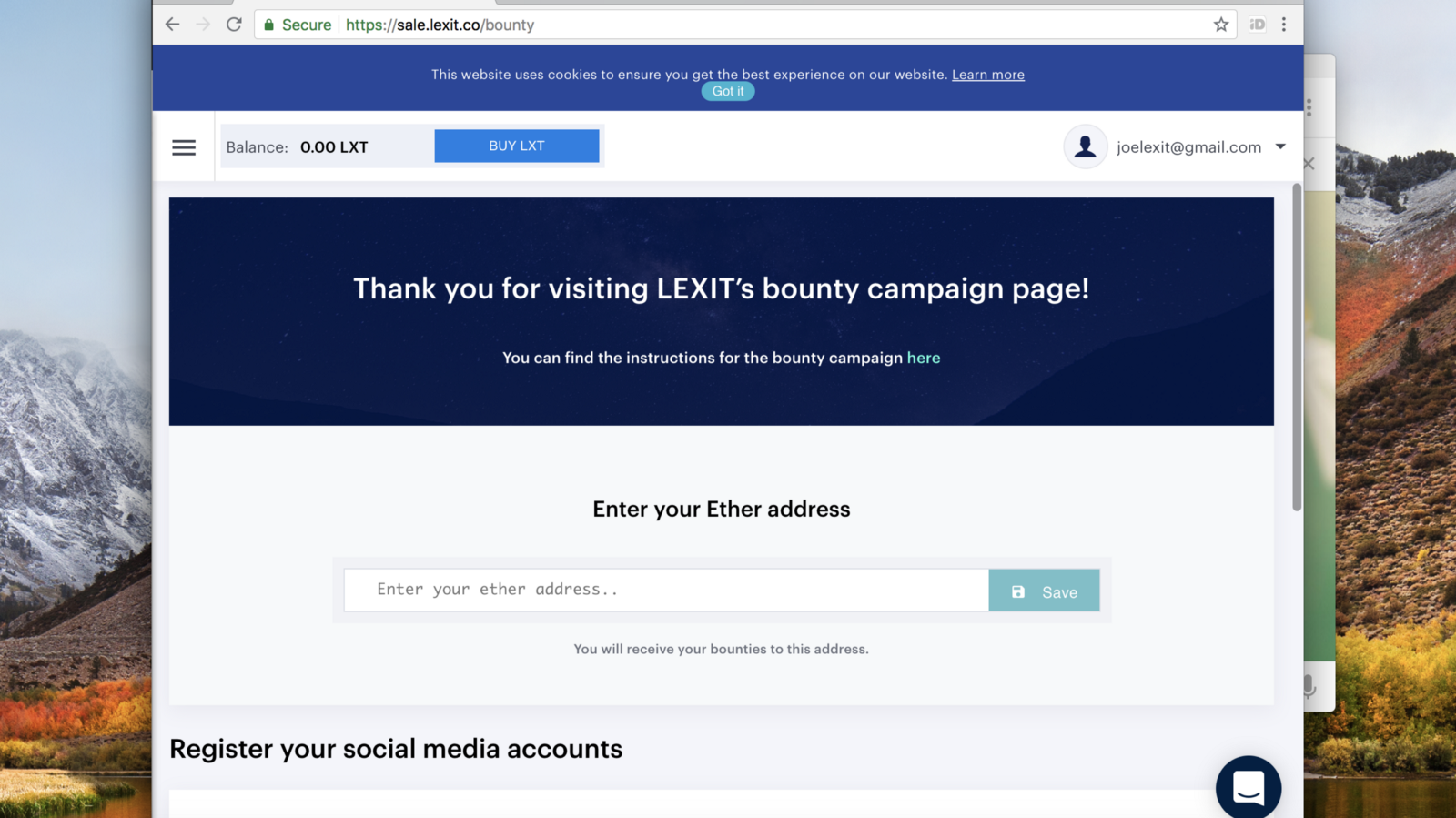 7. Go to “Bounties” from the dashboard and submit your ETH address.