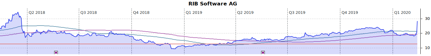 Selbstverständlich gibt es danach eine Weile keine eindeutigen Signale, sondern man eiert ein wenig herum, damit es dann nun heute um fast 41% nach oben schnellt und kurz ein paar Endorphine freisetzt. Wer wirklich auf Leid, Schmerzen und Glücksgefühlen steht, wird bei der RIB Software SM ... aeh SE, sicherlich gut beraten sein. ;)