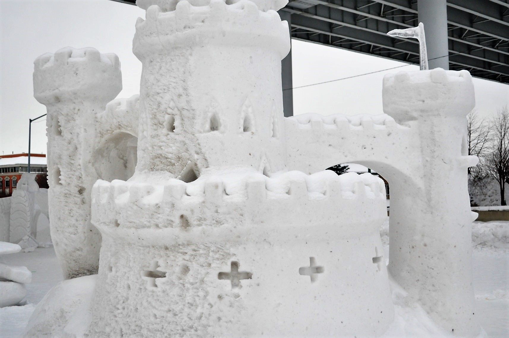 I found the effects of the weather on this sculpture interesting. Like an ancient castle that had stood the test of hundreds of years, this snow castle showed the challenge given from just one week.