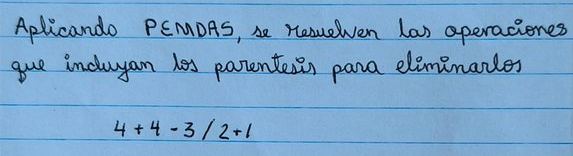 Quedando la ecuación de la siguiente manera: 4 + 4 - 3 / 2 + 1