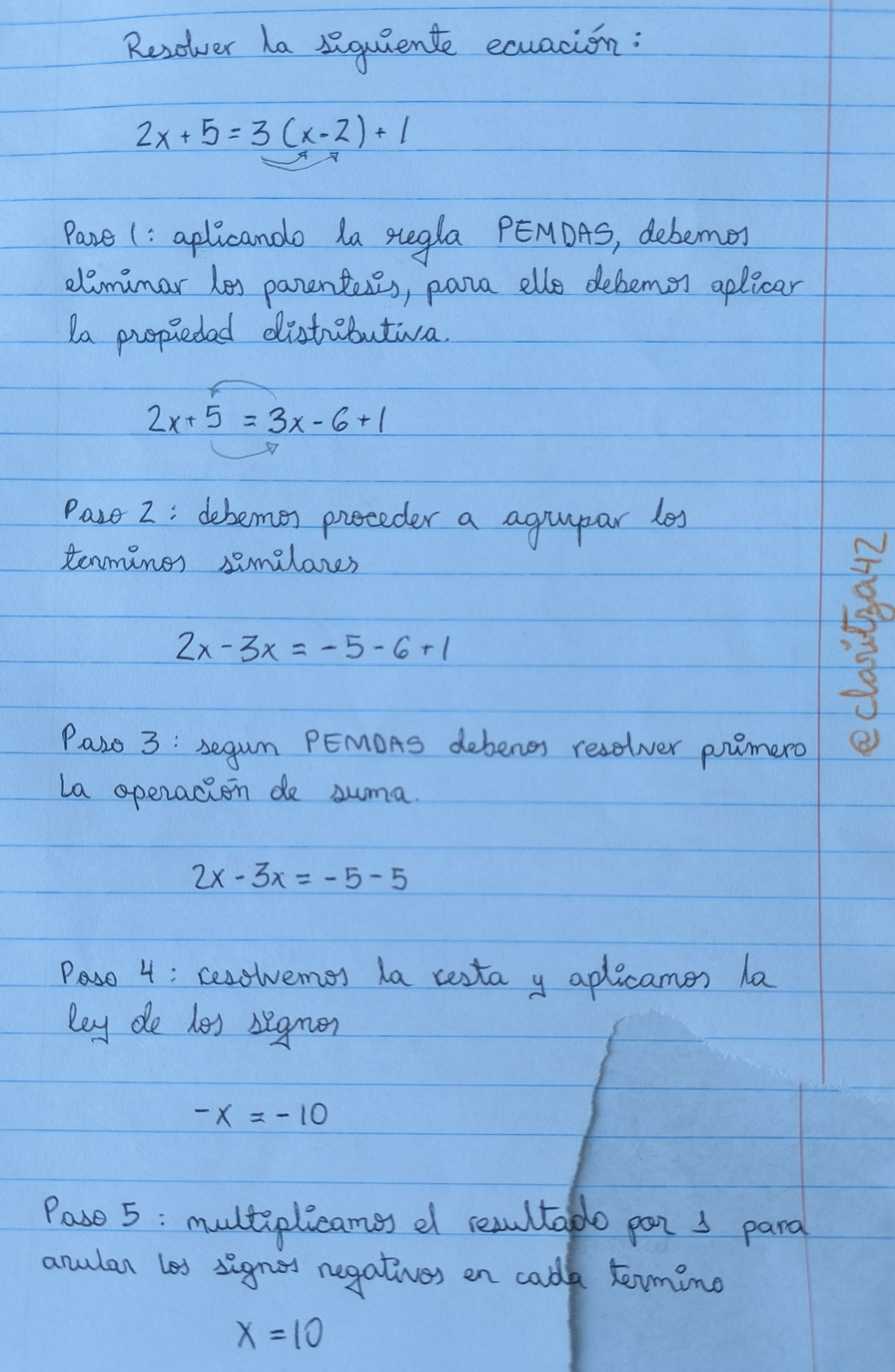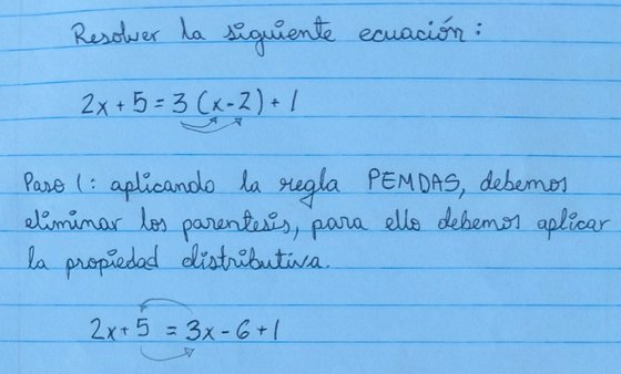 Para resolver esta ecuación, me guiare de las reglas PEMDAS.