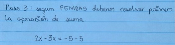 La ecuación queda de la siguiente manera: 2x - 3x = -5 - 5