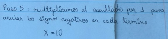 Paso 5: para finalizar, debemos realizar la multiplicación por 1 en ambos lados, para anular el signo negativo a nuestra variable.