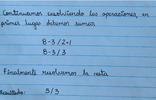 Quedando la ecuación de la siguiente manera: 8 - 3 / 3
