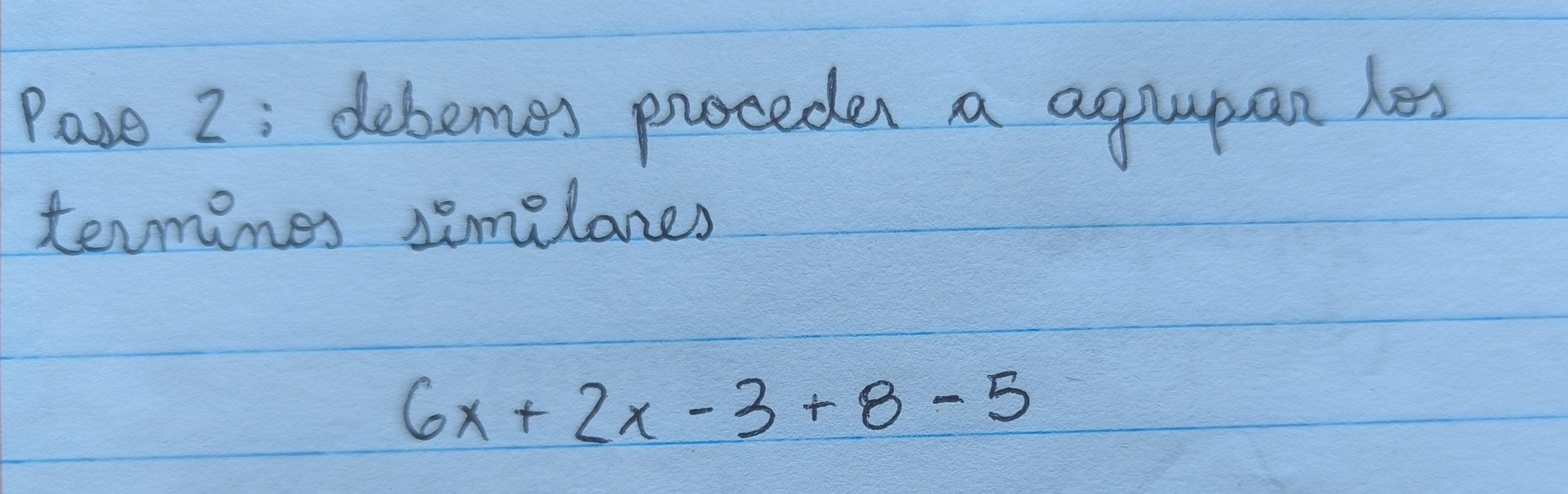 Paso 2: debemos proceder a agrupar los términos similares, para facilitar la resolución en los siguientes pasos.