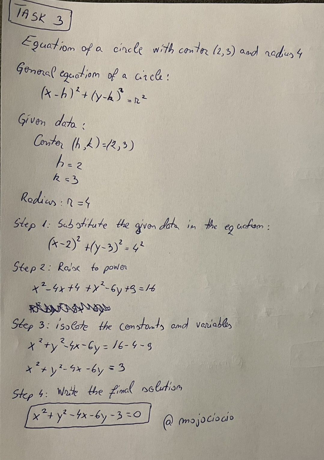 - Write the final solution: x^2 -4x + y^2 - 6y - 3 = 0