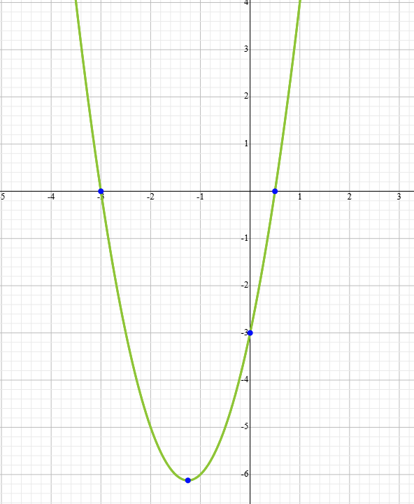 The parabola is open upwards, intersecting the x axis in -3 and 1/2.