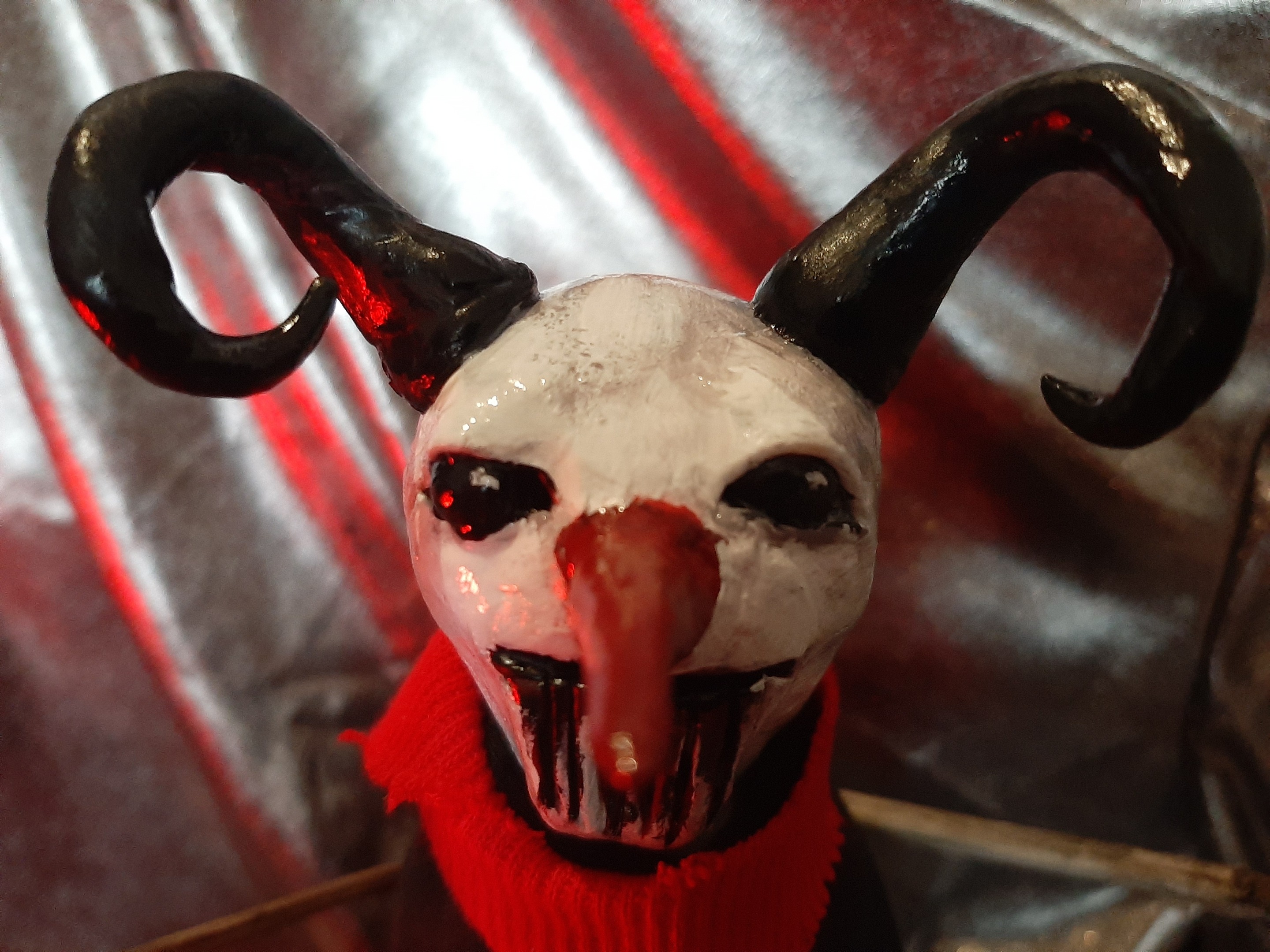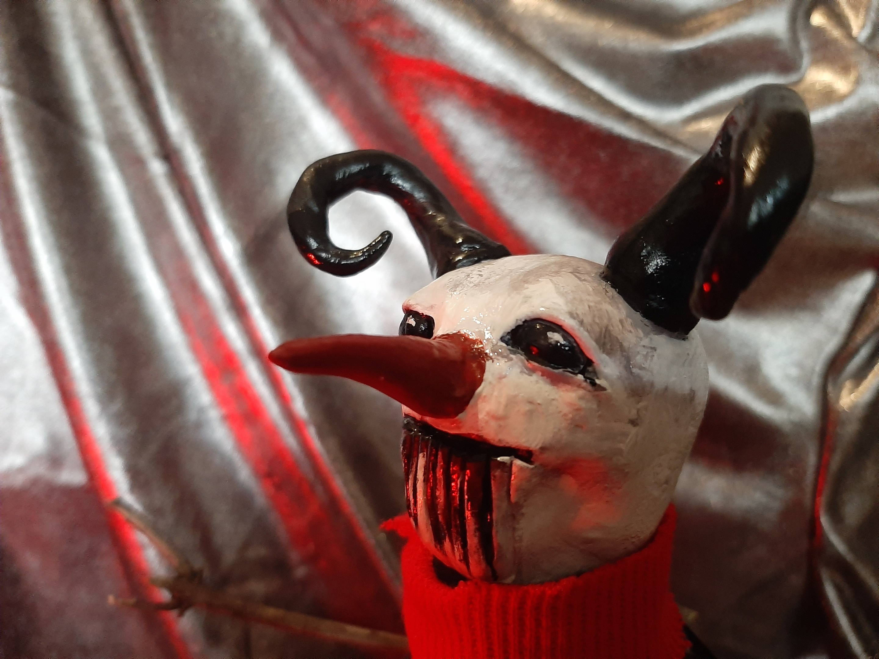 At this point I baked it in the oven (overcooked a bit! the horns turned brown) than I started slapping some paint on it: