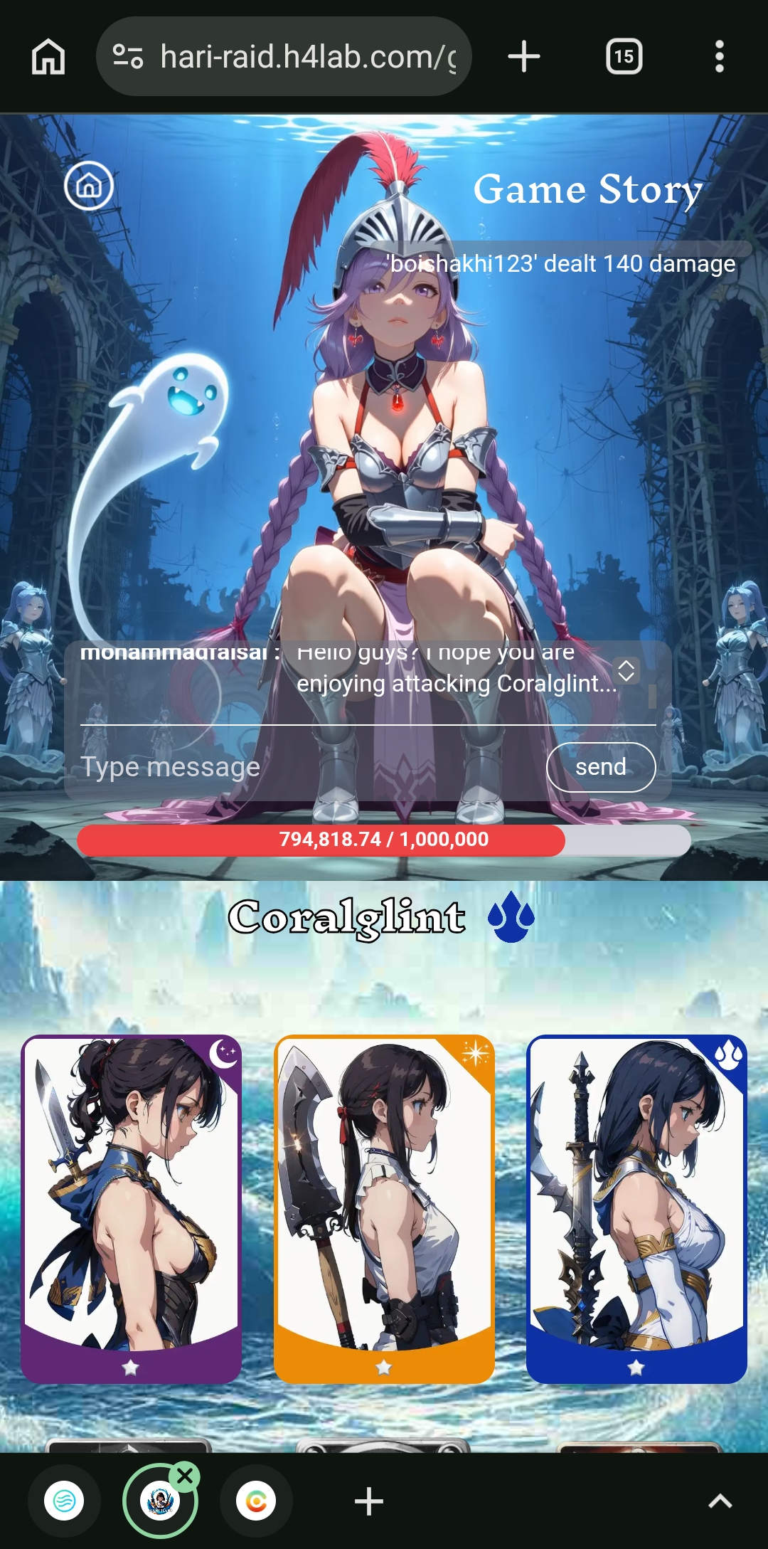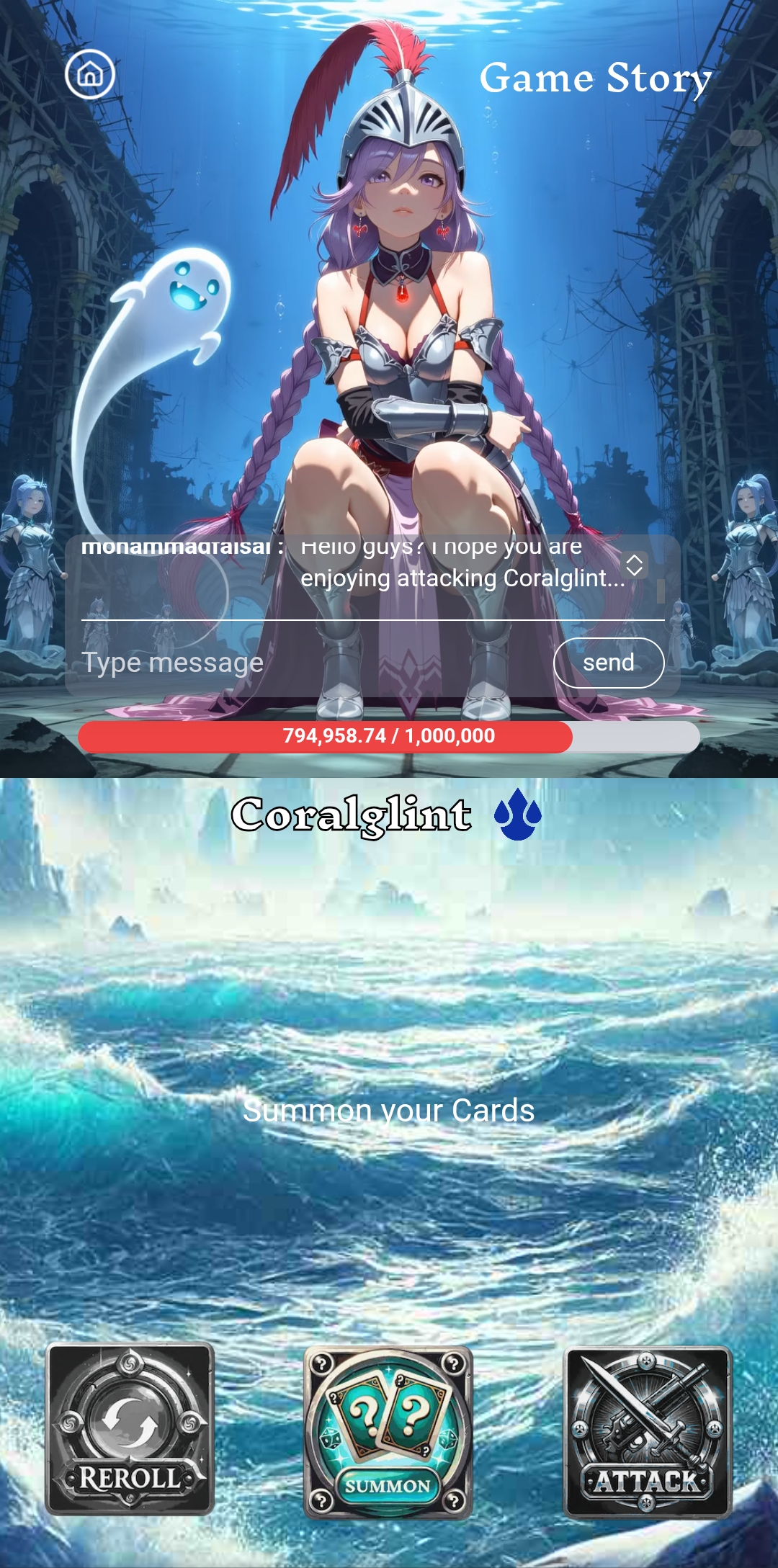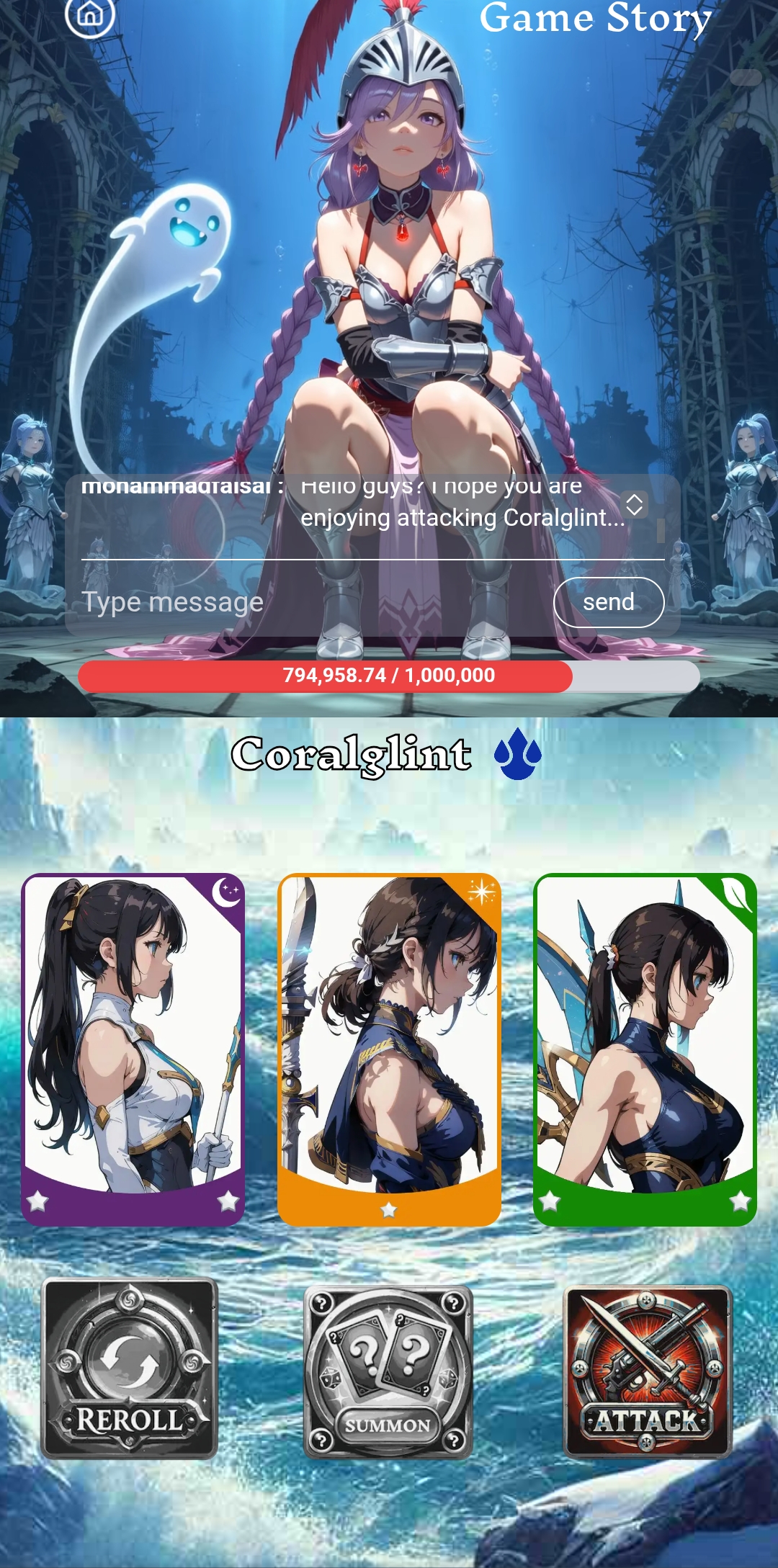Then I clicked on the play button. After clicking here, the summon option came. Then I clicked on the summon option. Then I clicked on the reroll option again. Here three more cards came. All of which had two stars on them. Then I clicked on the attack option and after fighting for a while, I got 140 points of damage.