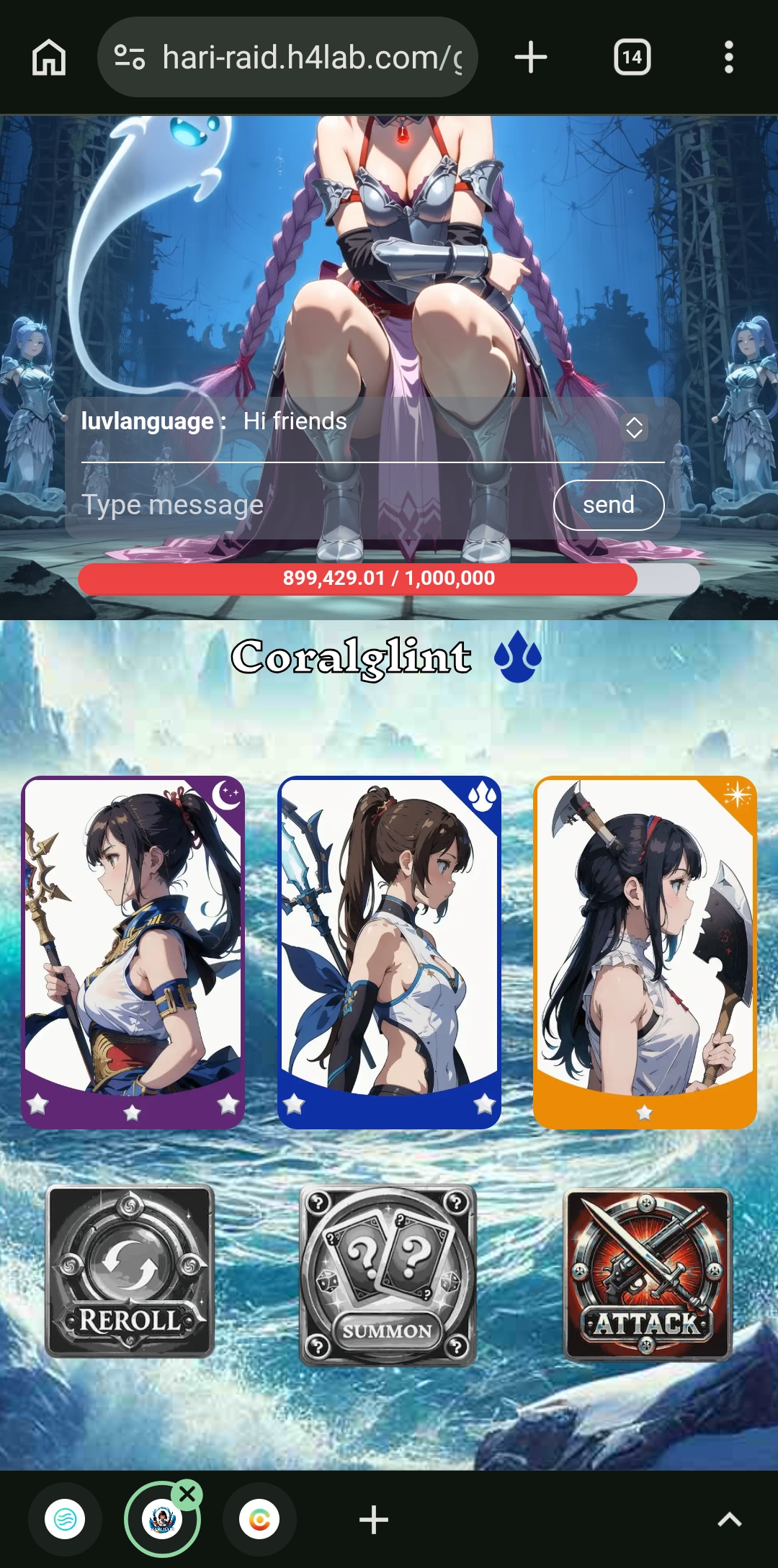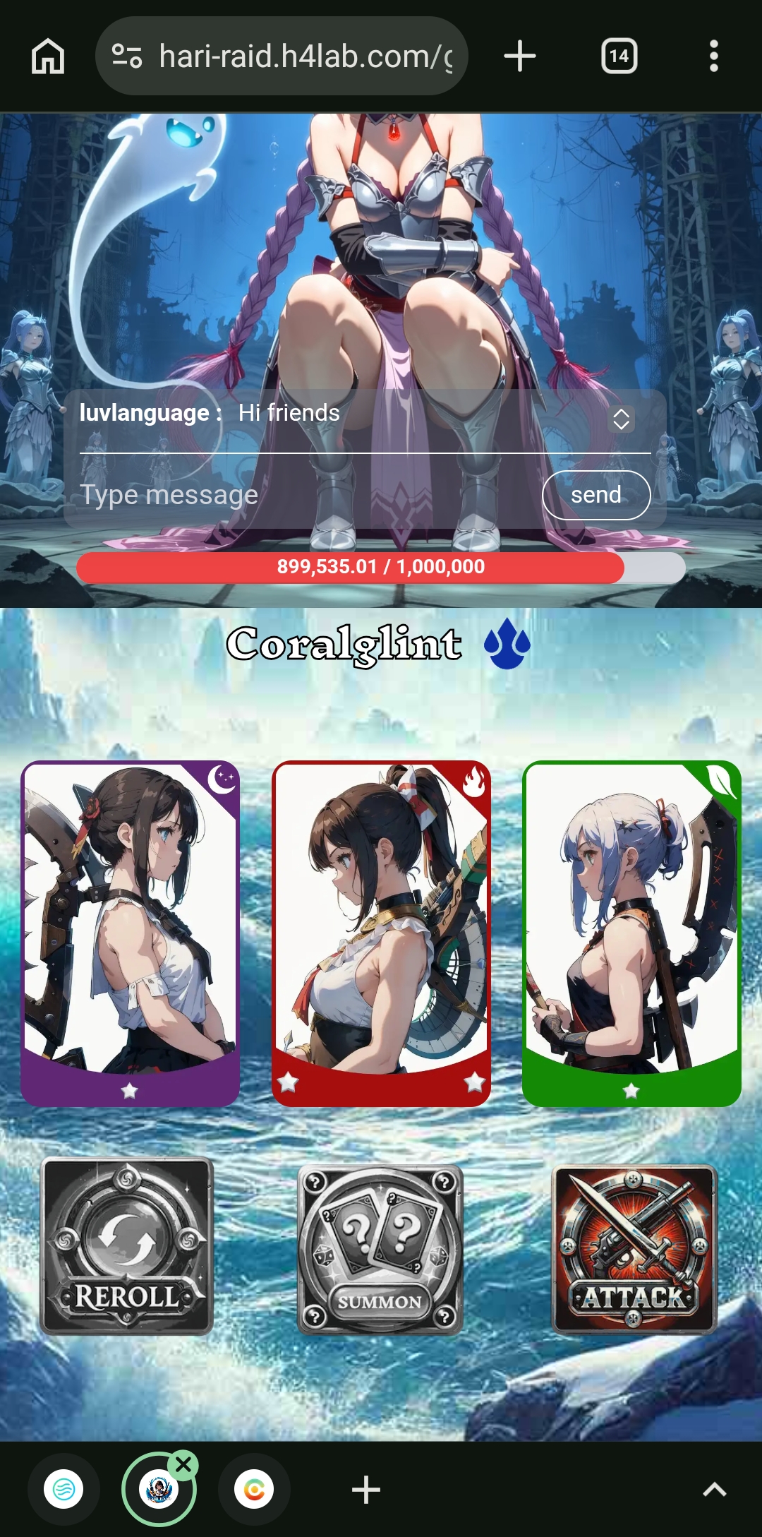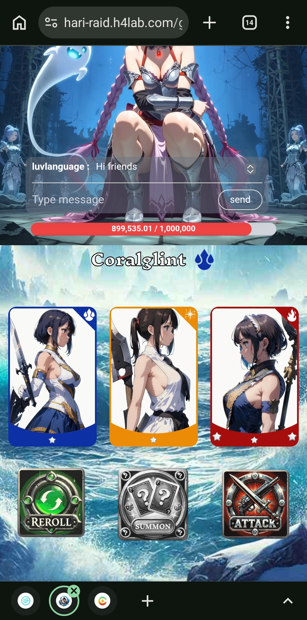 Then I clicked on the play button. After clicking here, the summon option came. Then I clicked on the summon option. Here came three cards. Which had less stars. For this, I clicked on the reroll option again. After clicking here, three more cards came. Then I clicked on the attack option and fought for a while.