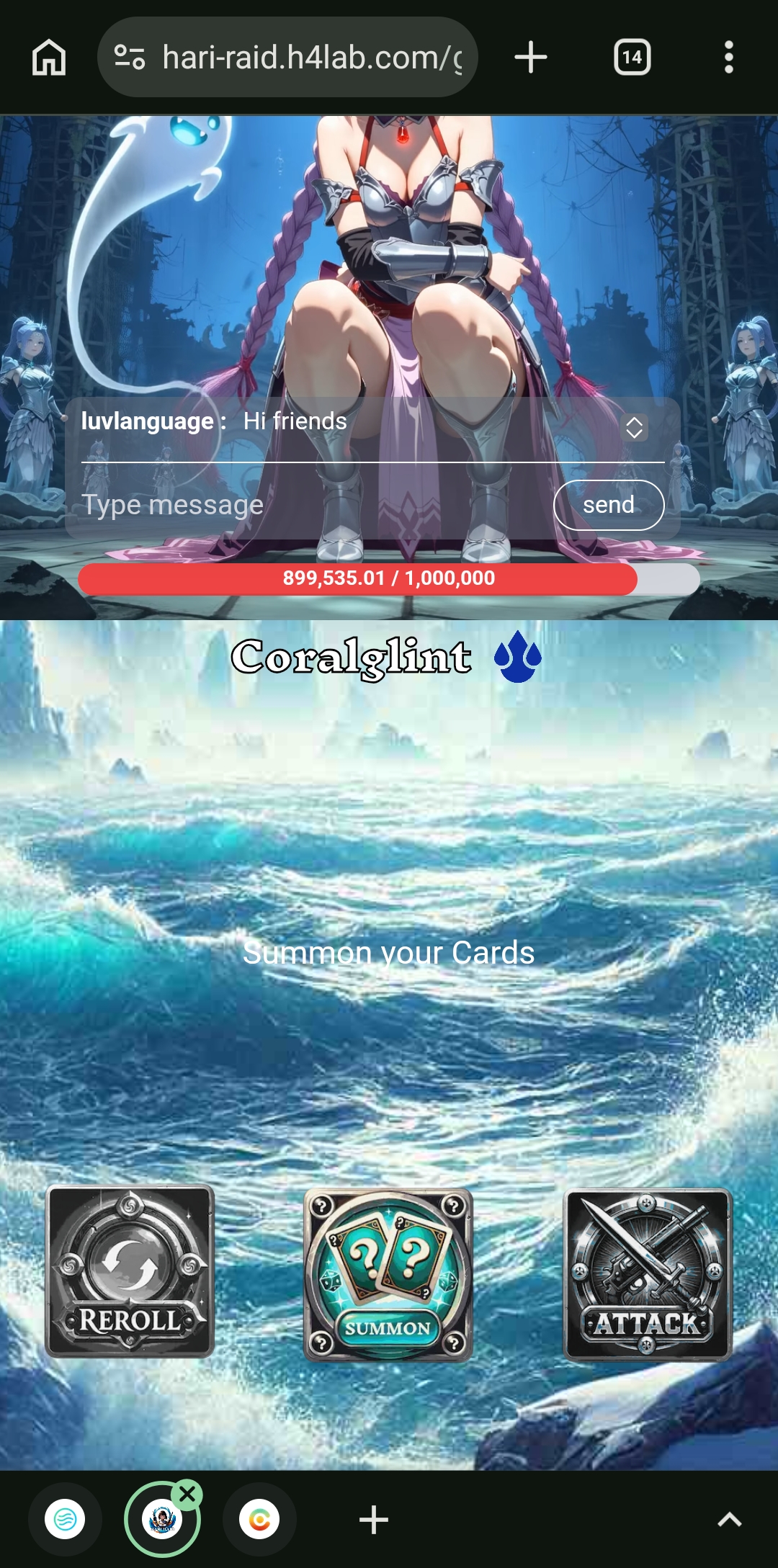 Then the summon option came again. After clicking on summon, three cards came. After that, I clicked on the attack option. After clicking on it and fighting for a while, 320 points of damage were done.